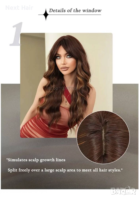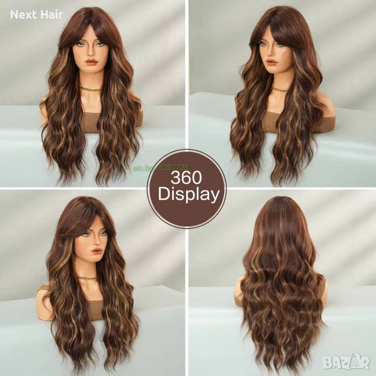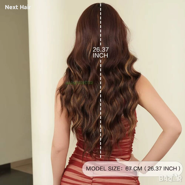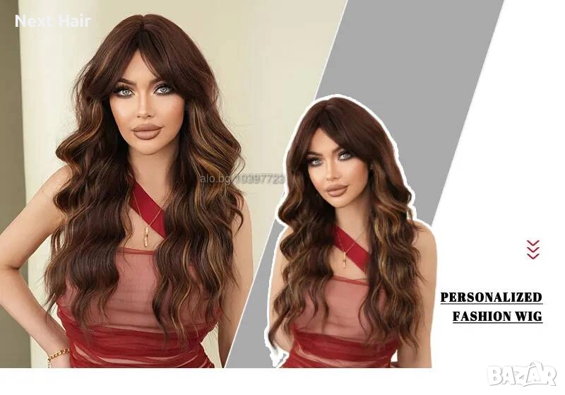 Кестенява перуса с руси кичури и дълъг бретон → Обява 52897445