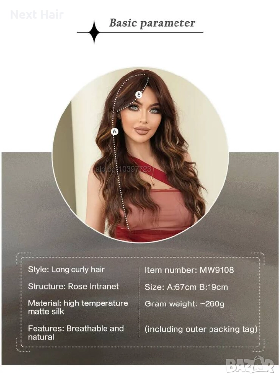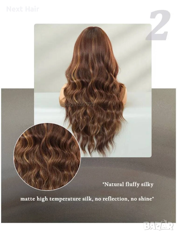 Перука от синтетичен косъм, може да издържи на температура от 150-170 градуса.