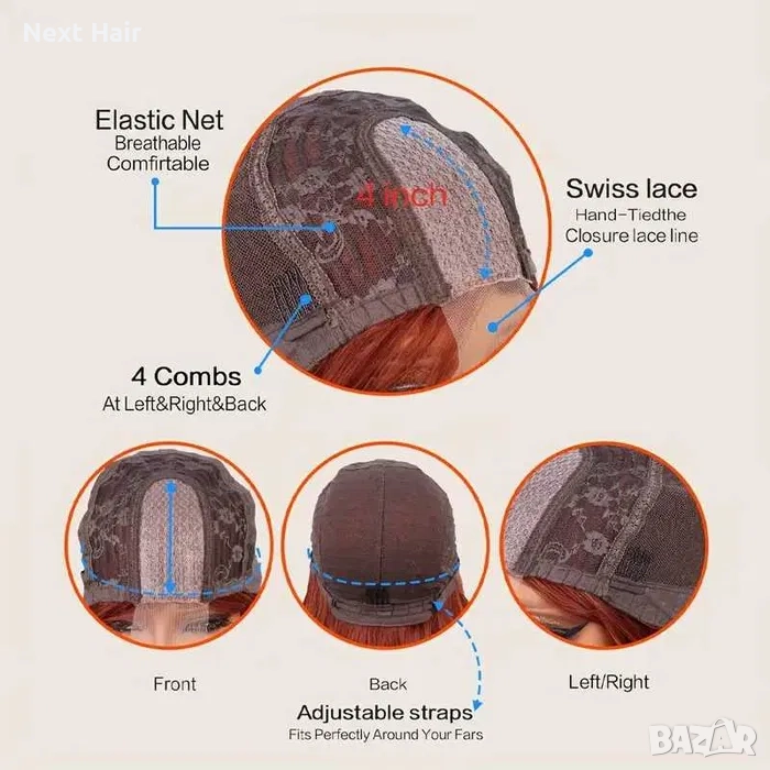 Има две ленти за регулиране от двете страни на перуката, можете да го регулирате според размера на главата, който Ви подхожда.