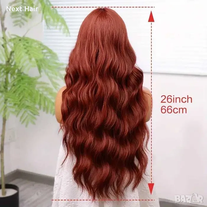 Кестенява вълнообразна перука на път → Обява 52897502