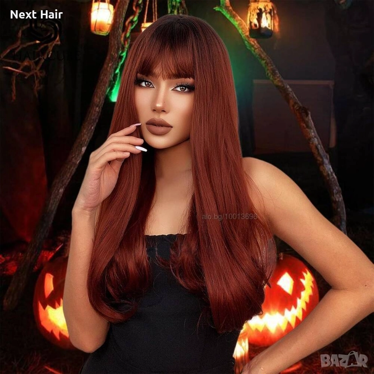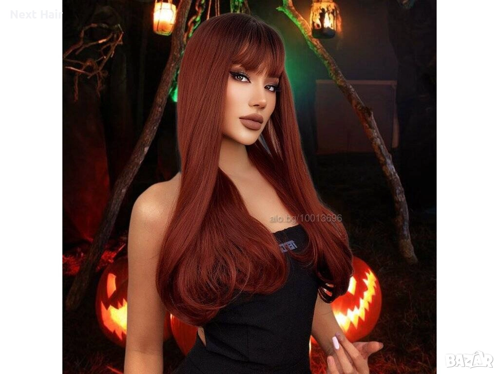 Нова визия за секунди - права перука с бретон, 60 см. Променете визията си мигновено с тази впечатляваща дълга права перука с бретон! Цветът е изключително модерен червеникаво-кафяв, който придава топлина, стил и естествено излъчване. Дължината от 60 см създава ефектна, женствена линия, а бретонът оформя красиво лицето.