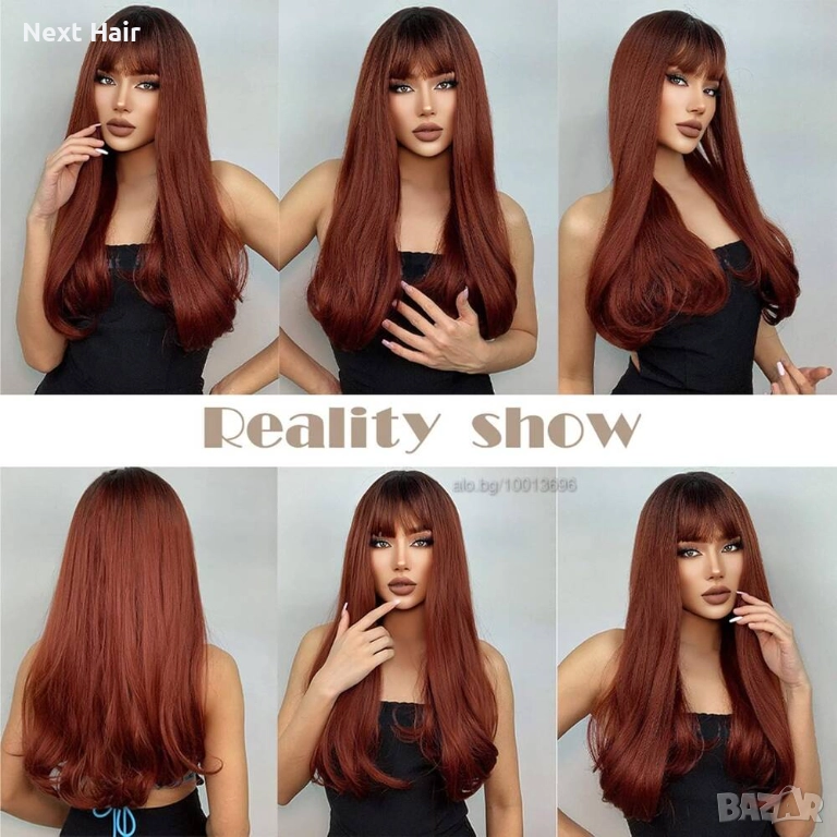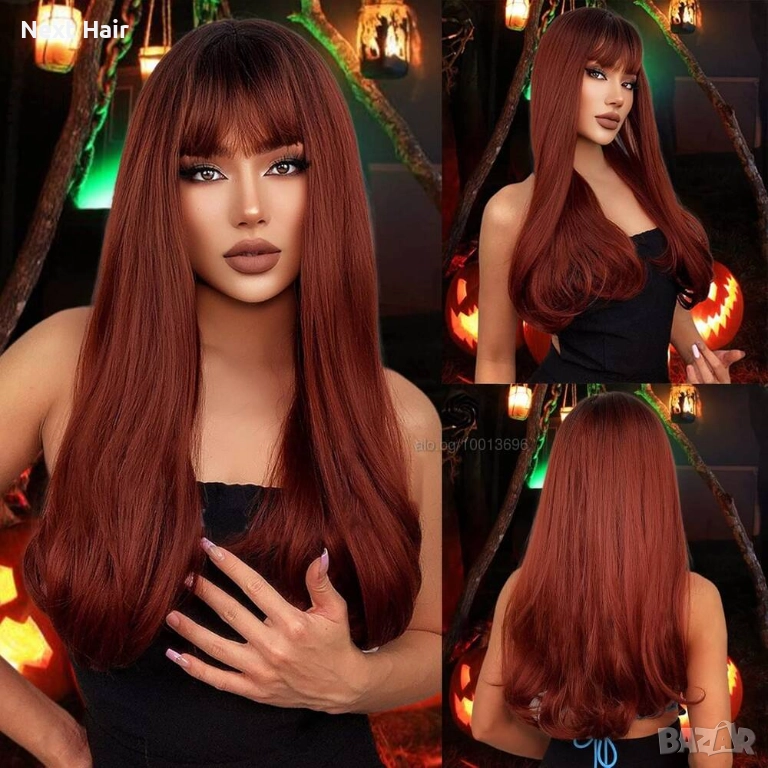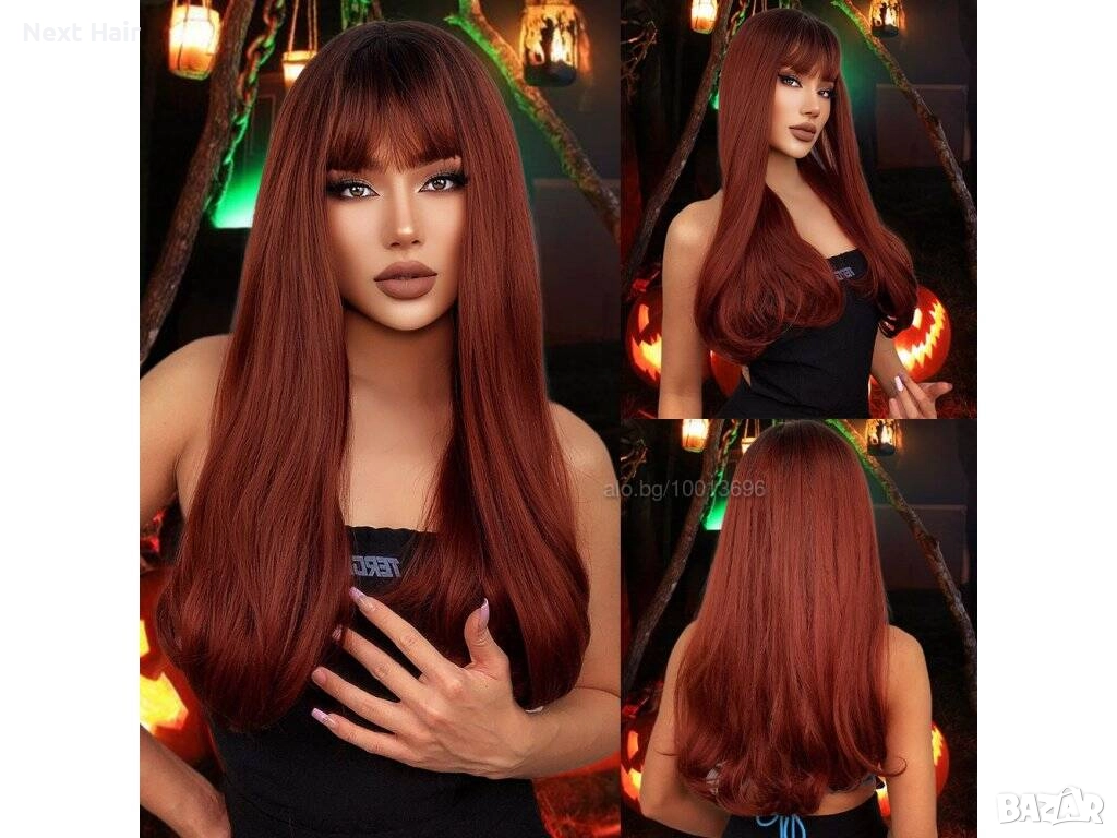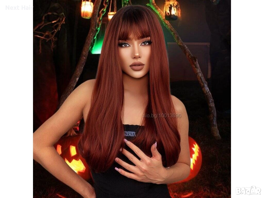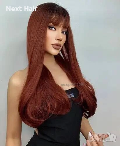 60 см омбре права перука с бретон в червеникаво-кафяв цвят → Обява 52897577