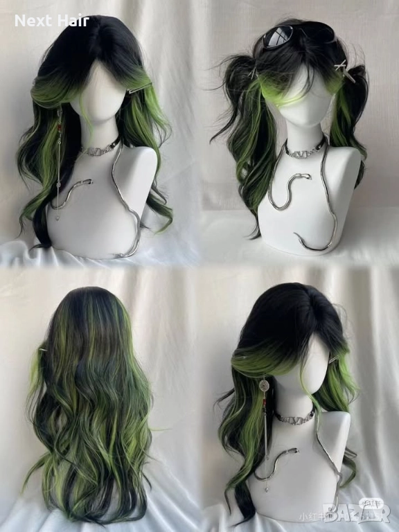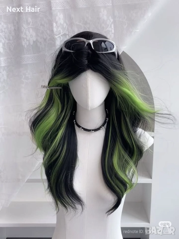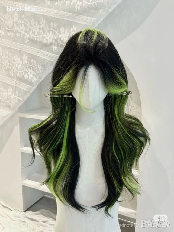 Добавете характер и стил към своята визия със синтетичната черна чуплива перука с лимонено-жълто-зелени кичури. Контрастът между дълбокото черно и неоновите акценти създава ефектна, артистична визия — идеална за фотосесии, сценични изяви, косплей, партита или смели ежедневни комбинации.