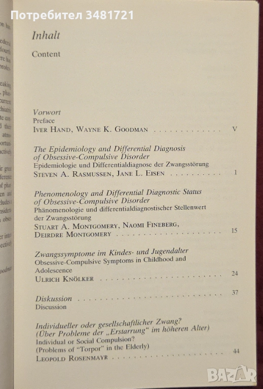 Книгата е базирана на конгреса „Обсесивно-компулсивни разстройства“, който се провежда през октомври 1992ра година в Психиатричната и неврологична клиника на Хамбургския университет. Международни експерти с биологична, фармакологична и поведенческа терапия представят и обсъждат актуалното състояние на познанията относно епидемиологията и фармакологичните и поведенческите възможности за лечение на обсесивно-компулсивни разстройства в детска и зряла възраст, както и концептуални модели на невробиологията, етиологията и социалната психология на компулсивното поведение.