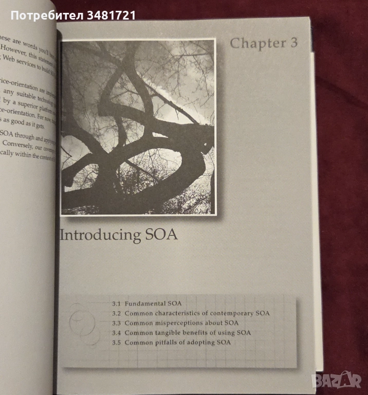 Повечето SOA книги се губят в техническите детайли на стандартите за уеб услуги или просто повтарят рекламата на доставчиците. Изданието на Томас Ърл не е сред тях. Тази книга обхваща наистина трудните части - сложния процес на планиране, проектиране и внедряване на сервизно-ориентирани архитектури, които отговарят на организационните цели. Тя е важен спътник за всеки софтуерен разработчик, архитект или ръководител на проекти, който внедрява или обмисля внедряване на сервизно-ориентирана архитектура, като наред с текста, информацията е представена и в много диаграми.