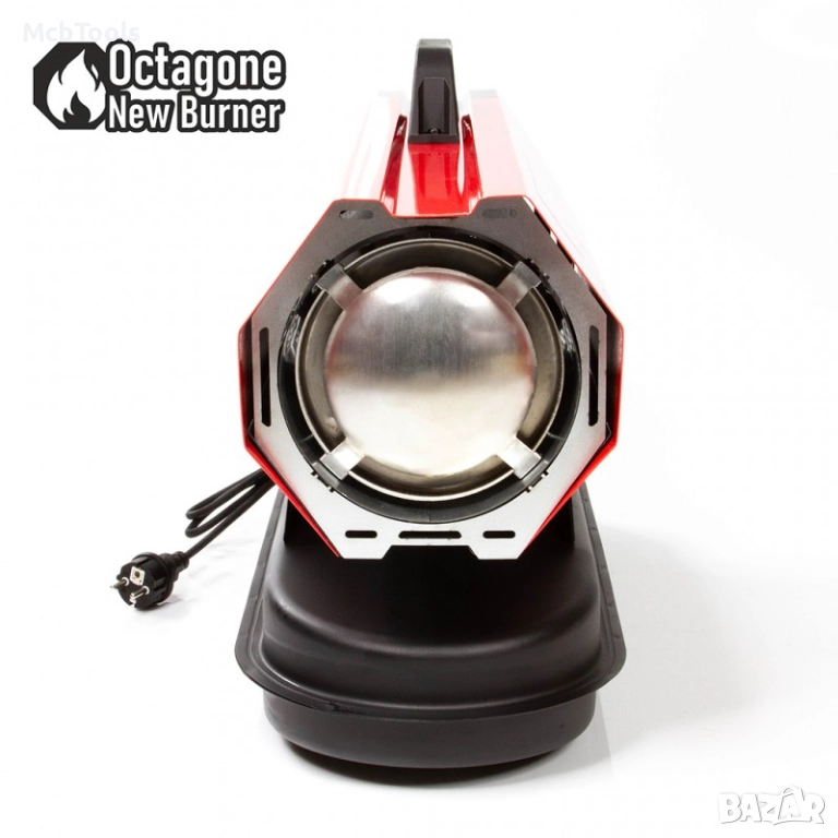 Мобилният маслен нагревател с мощност 30kW е идеален за отопление на големи помещения. Корпусът на устройството е изработен от метал, докато нагревателният елемент е от неръждаема стомана. Въздушният поток е 500m3/h. Благодарение на отворената горивна камера се получават високи температури на издухване, което позволява на съоръжението да се нагрява много бързо или сушене на материали. Осмоъгълна форма, прави устройството по-тихо. Допълнително предимство на нагревателя е подаване на гориво под високо налягане, така че ефективността на нагревателя да е по-висока при същия разход на гориво като в оборудване с ниско налягане.