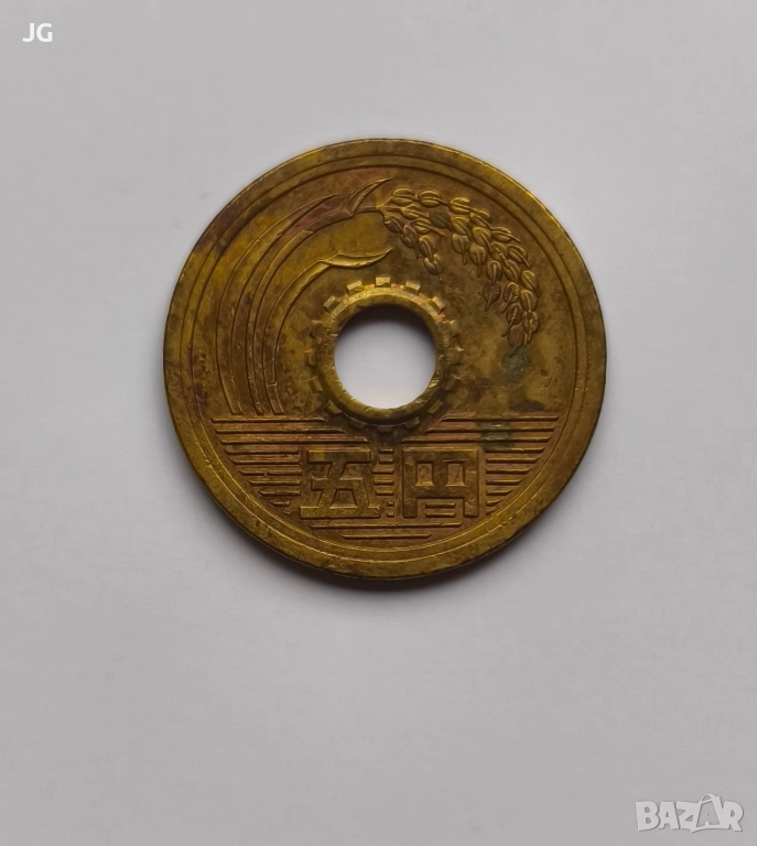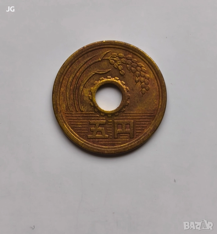 Японски монети 5 йени Япония японска монета с дупка 4 японски монети 五円 Ерата Хейсей и ерата Шьова → Обява 52898257