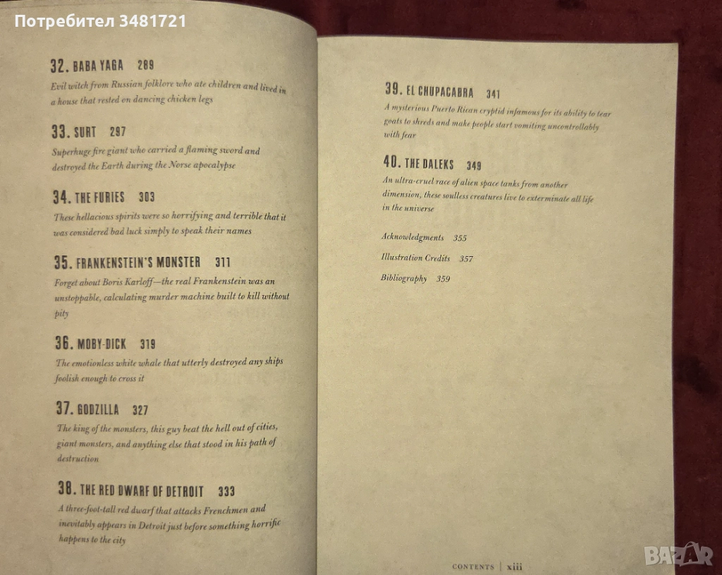 Четвъртата част включва злокобни чудовища, адски създания и същества, предизвикващи невъобразим ужас у тези, които дори само чуват името им. От Годзила и Чупакабра, през Баба Яга и Червеното джудже от Детройт, до Далеките.