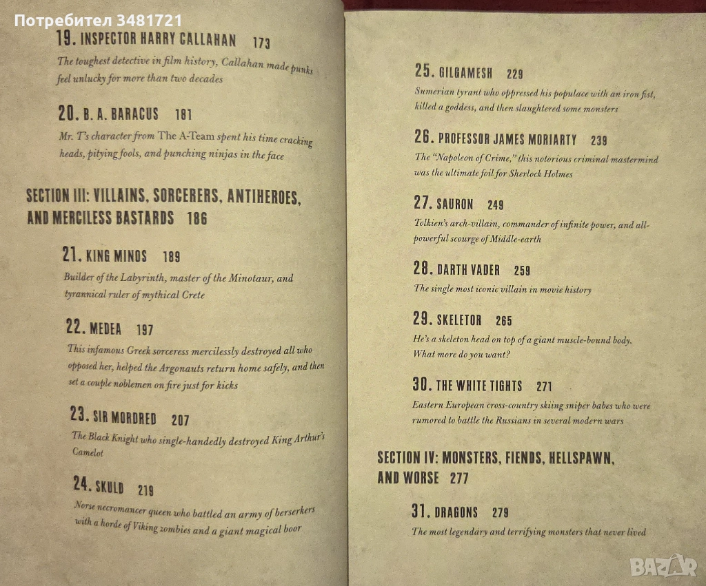 Третата е посветена на анти-герои, магьосници и безмилостни кучи синове. От Мордред и Гилгамеш, през цар Минос и Саурон, до Скелетор и Медеа.