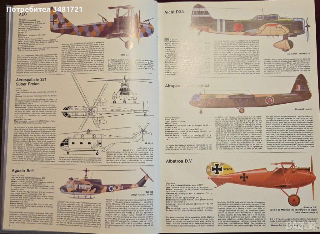 Голяма, подробна и богато илюстрирана енциклопедия на военната авиация от 20ти век. Включва история и технически характеристики на моделите, бойно приложение, напречни разрези с описание на различните елементи и т.н.