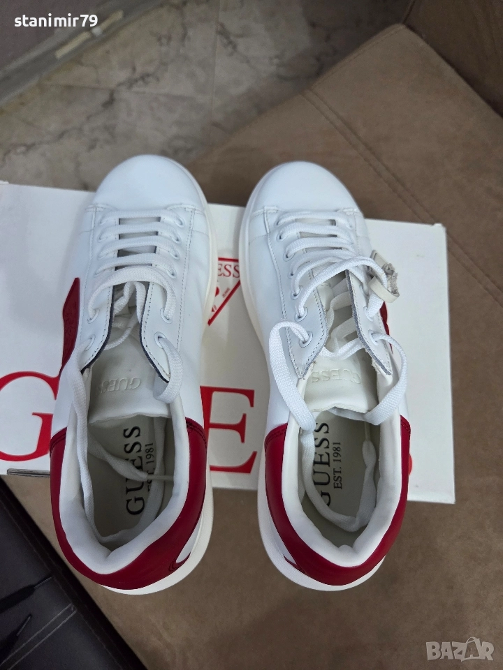 Нови сникърси GUESS 40 номер 2 чифта-бяло/черно и бяло/червено. Естествена кожа. Обувани пп 1-2 пъти и са като нови.Цената е за чифт.Спиди/еконт.