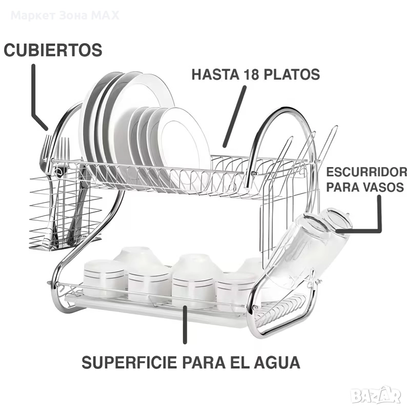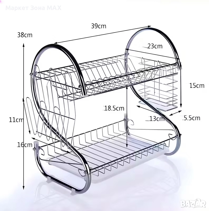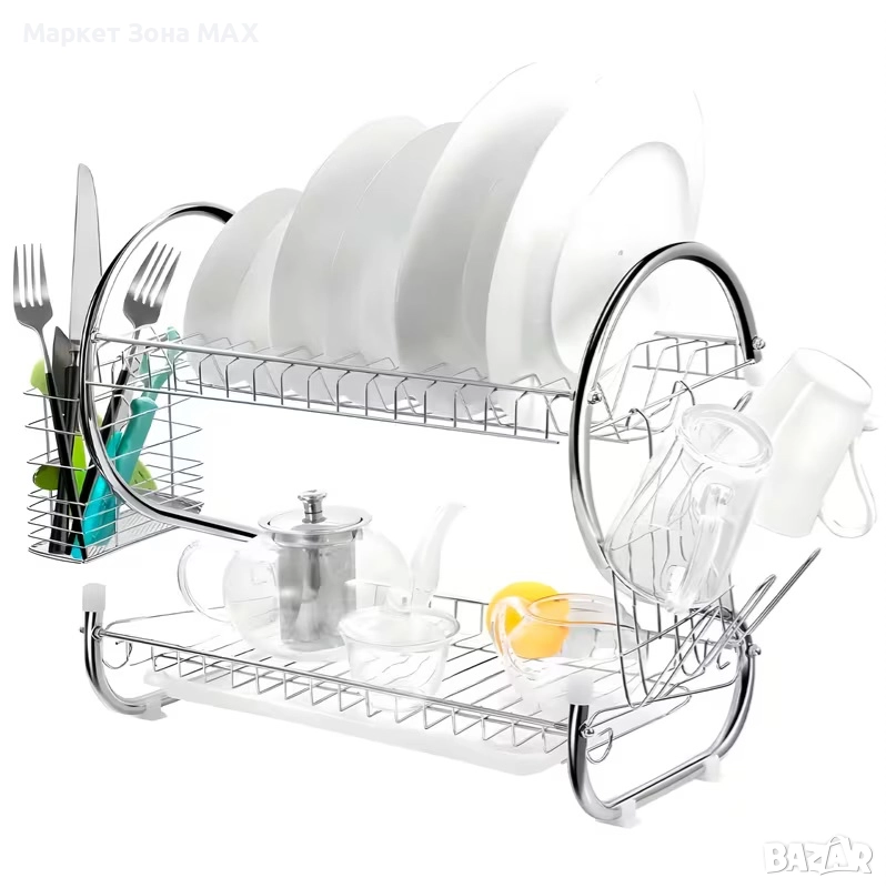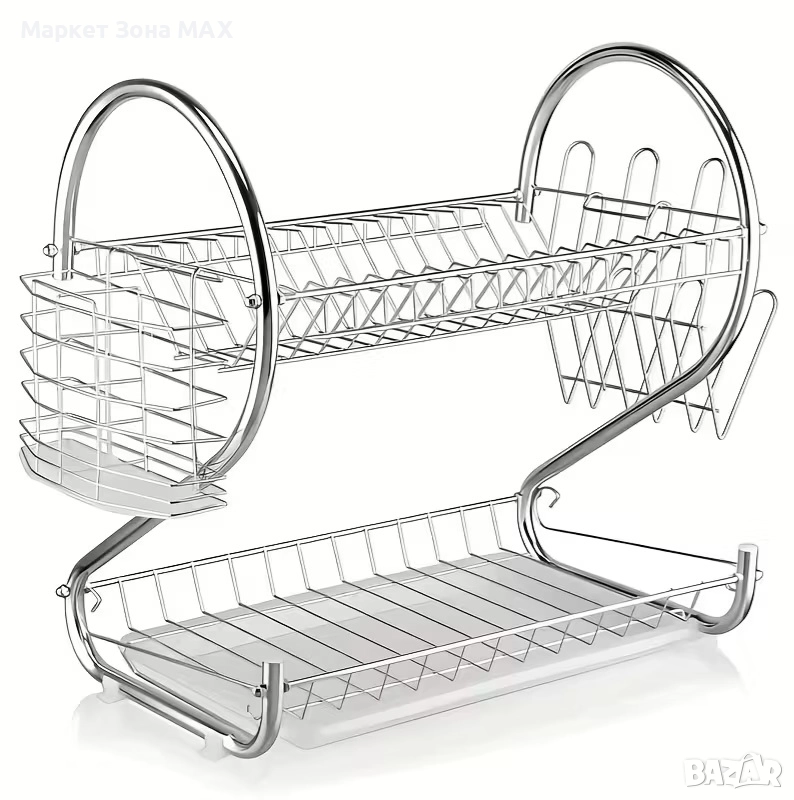 Стилна двуетажна сушилня от неръждаема стомана с разширяем S-образен дизайн – спестява място и побира всичко: чинии, купи, чаши, тенджери и тигани.