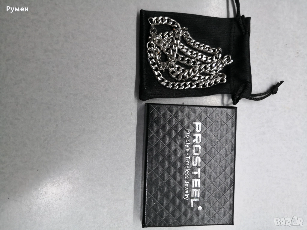 Нов титаниев пръстен черно и синьо, размер 9, 49 мм обиколка 10 лв. Верижка медицинска стомана 40 лв. И двете са нови, с маркировка, в кутии