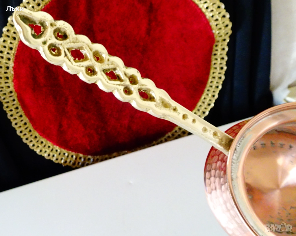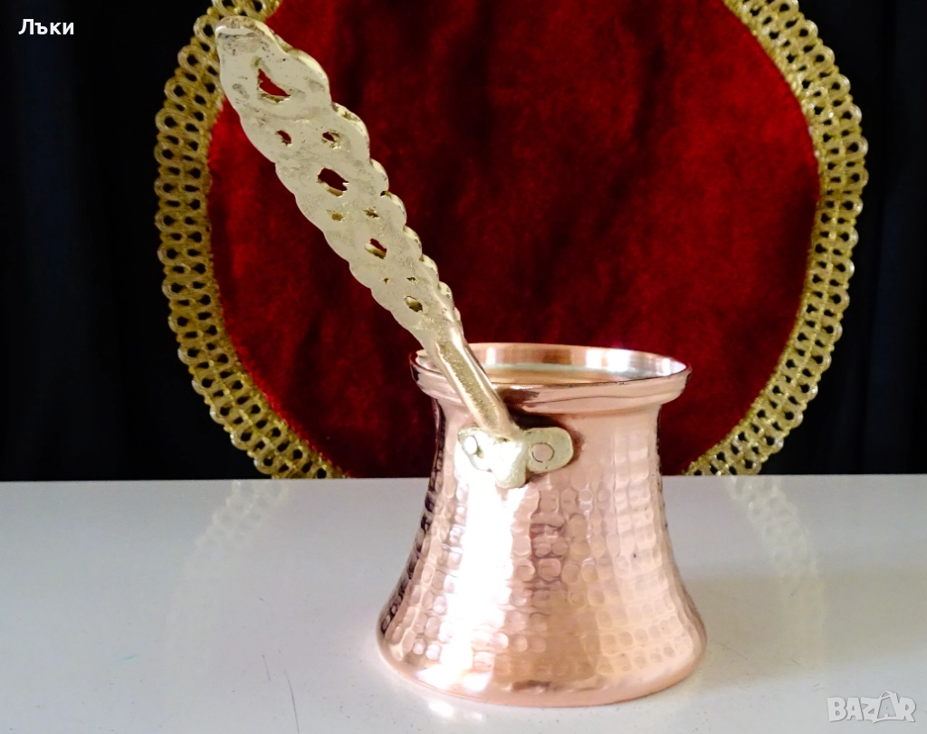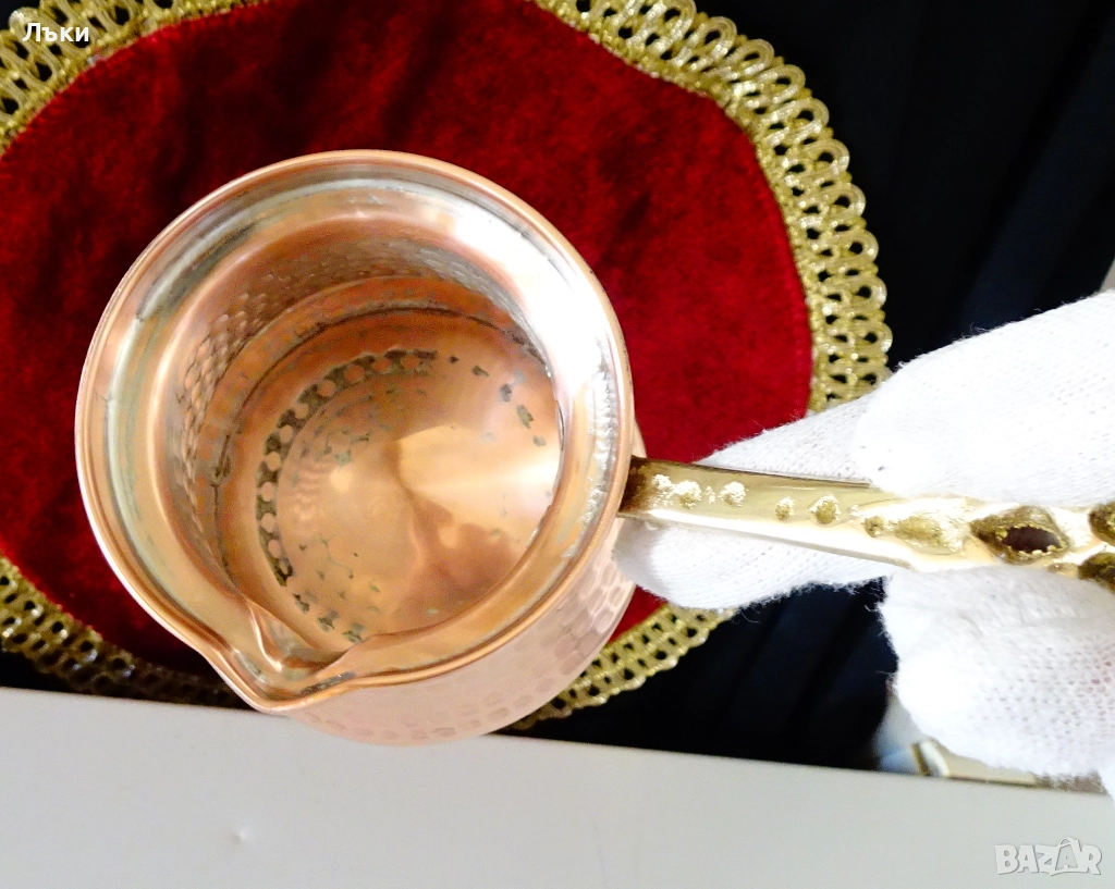 мед.Има бронзова дръжка,стабилно закрепена за съда с медни нитове.Височина 8