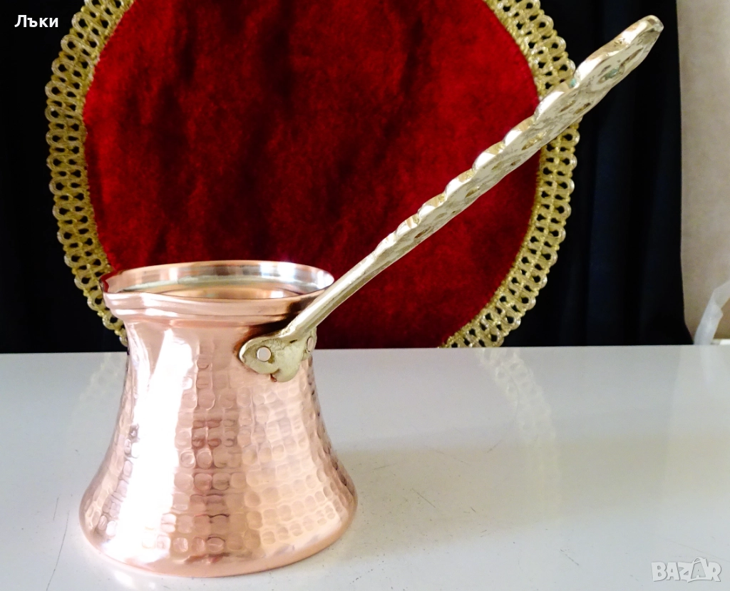 Старо медно джезве,ръчно ковано от масивна чиста червена
