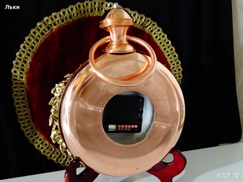 30 см.,диаметър 21 см.,диаметър на циферблата 15 см.,тегло 700 гр.Изключителна
