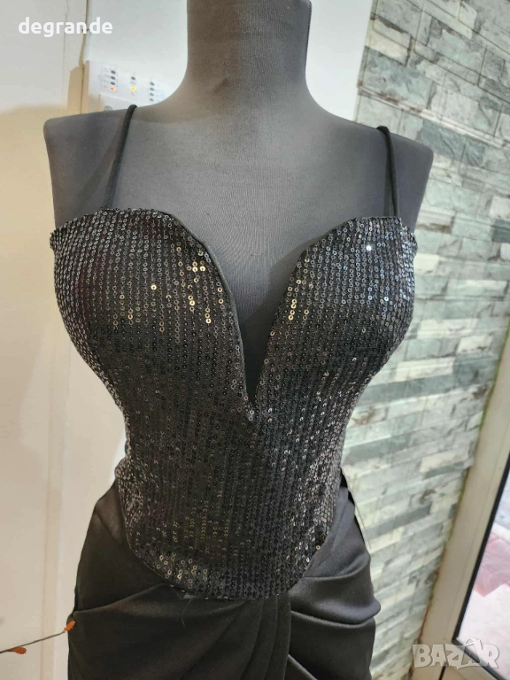 Ефектна дамска рокля с паети и сатен, снимка 1 - Рокли - 52900289 Ефектна дамска рокля с паети и сатен, снимка 2 - Рокли - 52900289 1/2