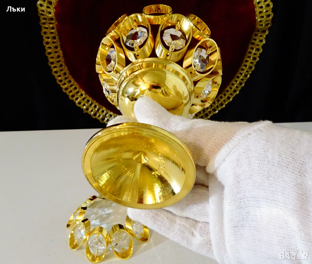 Gold Crystal.Има ефектен дизайн на полюлей,декориран с блестящи ръчно шлифовани