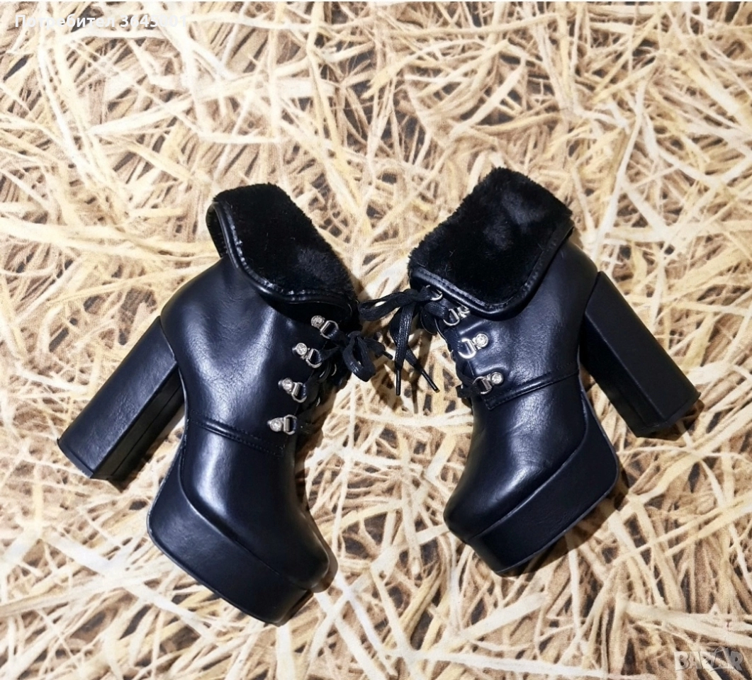 Черни дамски боти от изкуствена кожа с масивен ток и платформа. N36/ НОВИ → Обява 52900364