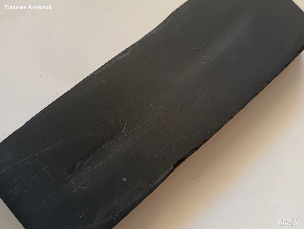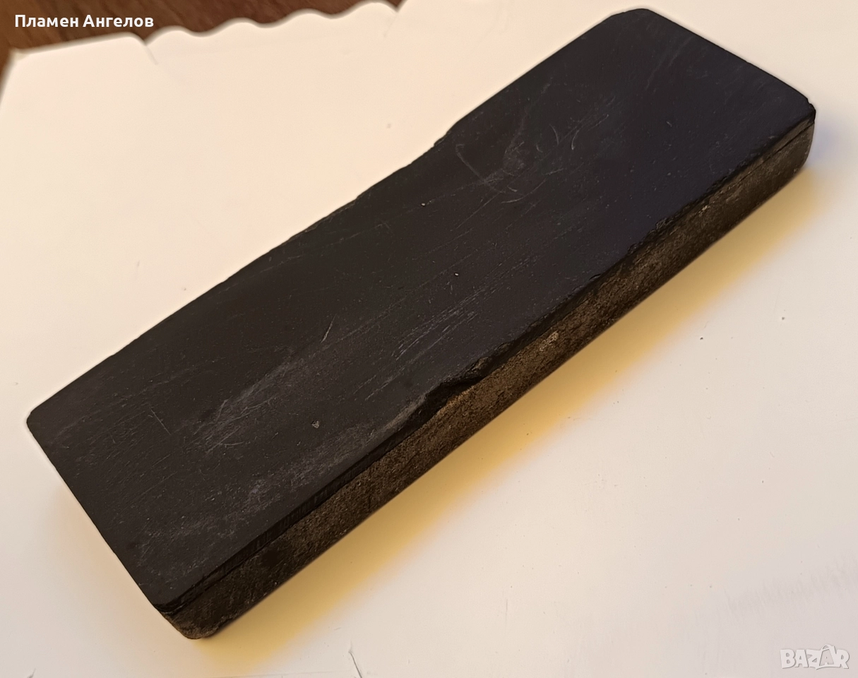 Стара белгия, използвана, работен е повече от черната страна. Заточва отлично, сваля финният конец от остриетата,който е запознат ме разбира. Много е работен с нея. Размери :дължина 15см.,ширина 5см.,1,8см.