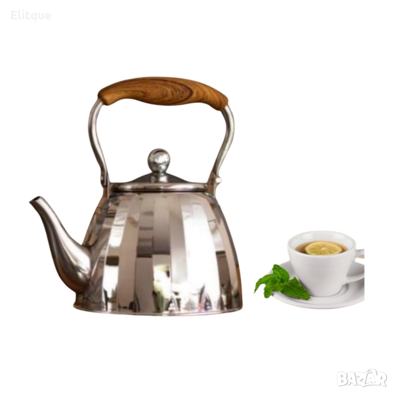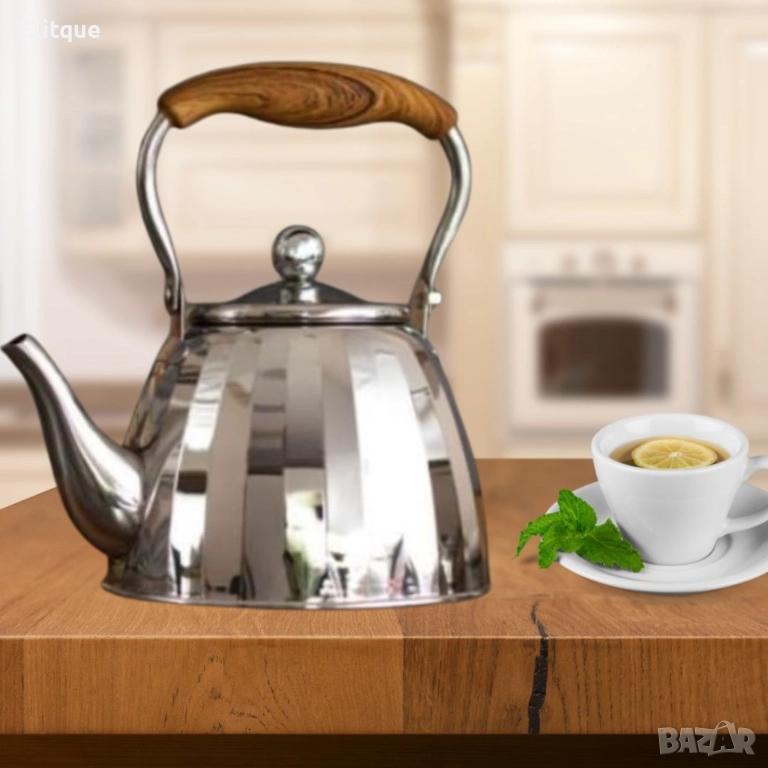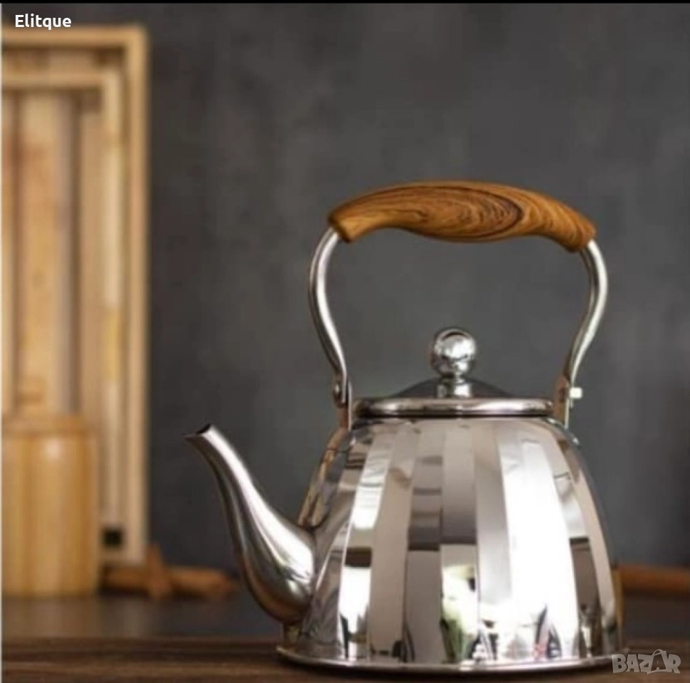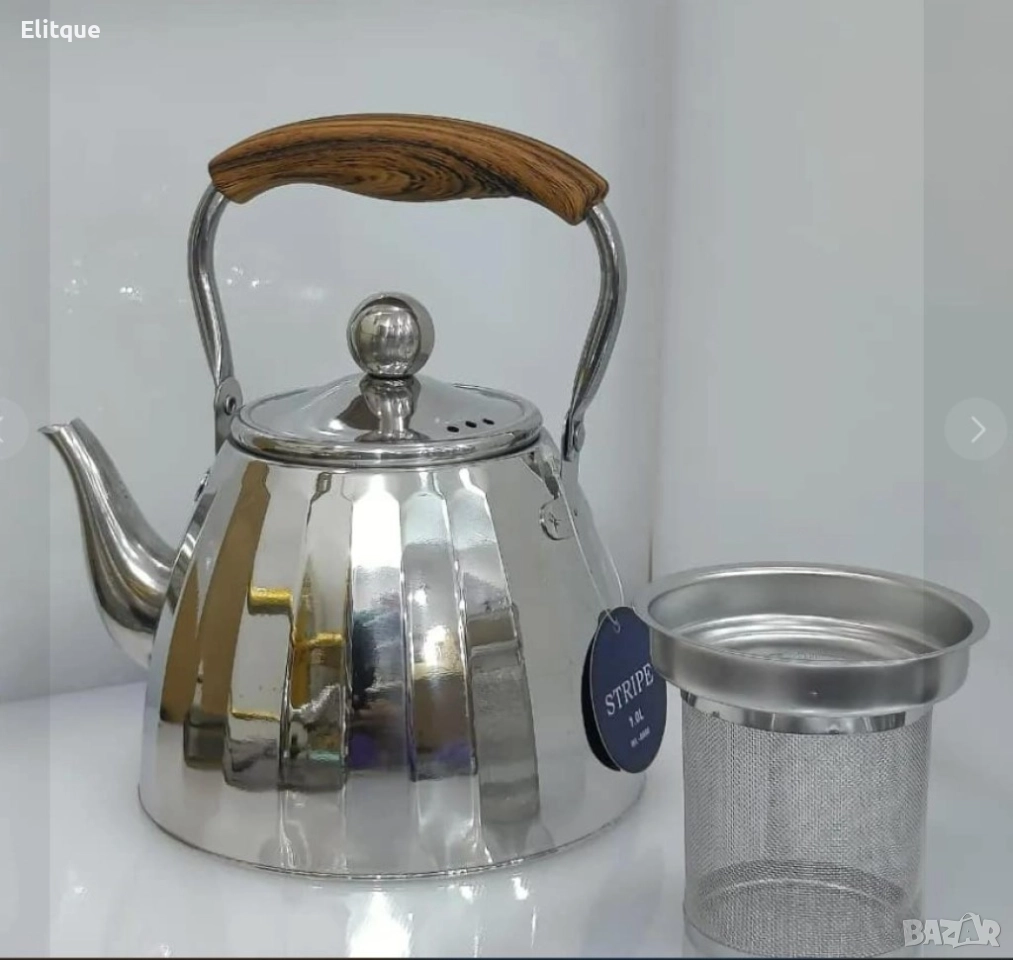 ?? Чайник от неръждаема стомана с фина цедка и топла дървена дръжка. Обем от 1 литър, идеален за приготвяне на вкусни чаеве и кафе. Стилен, функционален и издръжлив - перфектен за домашна употреба и специални моменти. ??