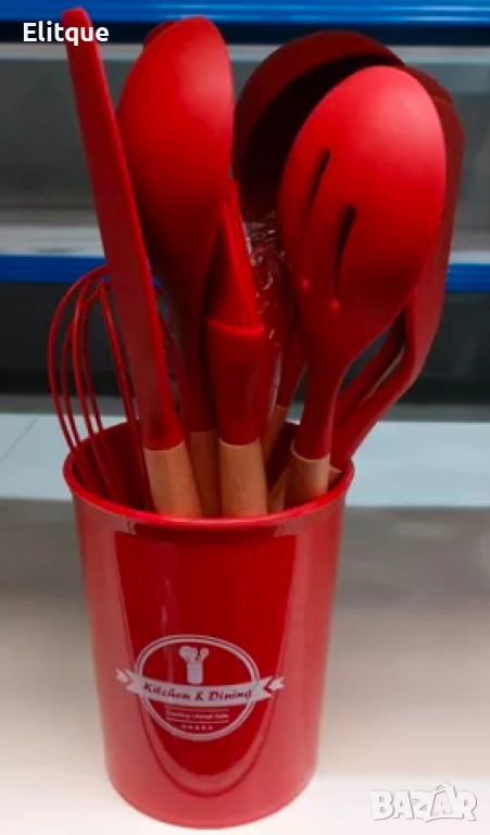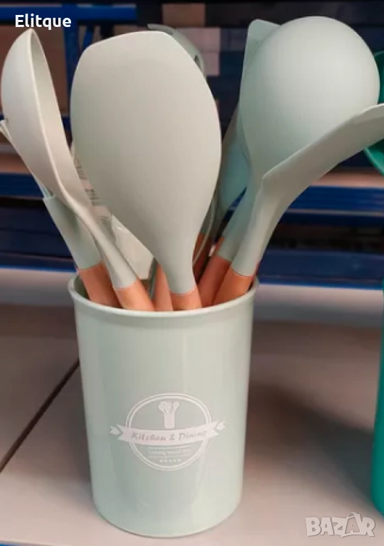 Комплект кухненски прибори 11 бр. в кръгла поставка. ВАРИАНТИ: НЕЖНИ И ПРАКТИЧНИ ЦВЕТОВЕ. Материал: силикон с дървени дръжки. Този комплект представлява идеалния спътник за вашата кухня, като комбинира стил, функционалност и издръжливост в едно. Всеки от приборите е създаден с внимание към детайлите и изработен от висококачествен силикон, който е безопасен за хранене, лесен за почистване и не надрасква вашите тигани и тенджери. Дървените дръжки придават на всеки инструмент топлина и естетика, правейки ги подходящи както за професионални готвачи, така и за любители на кулинарното изкуство.