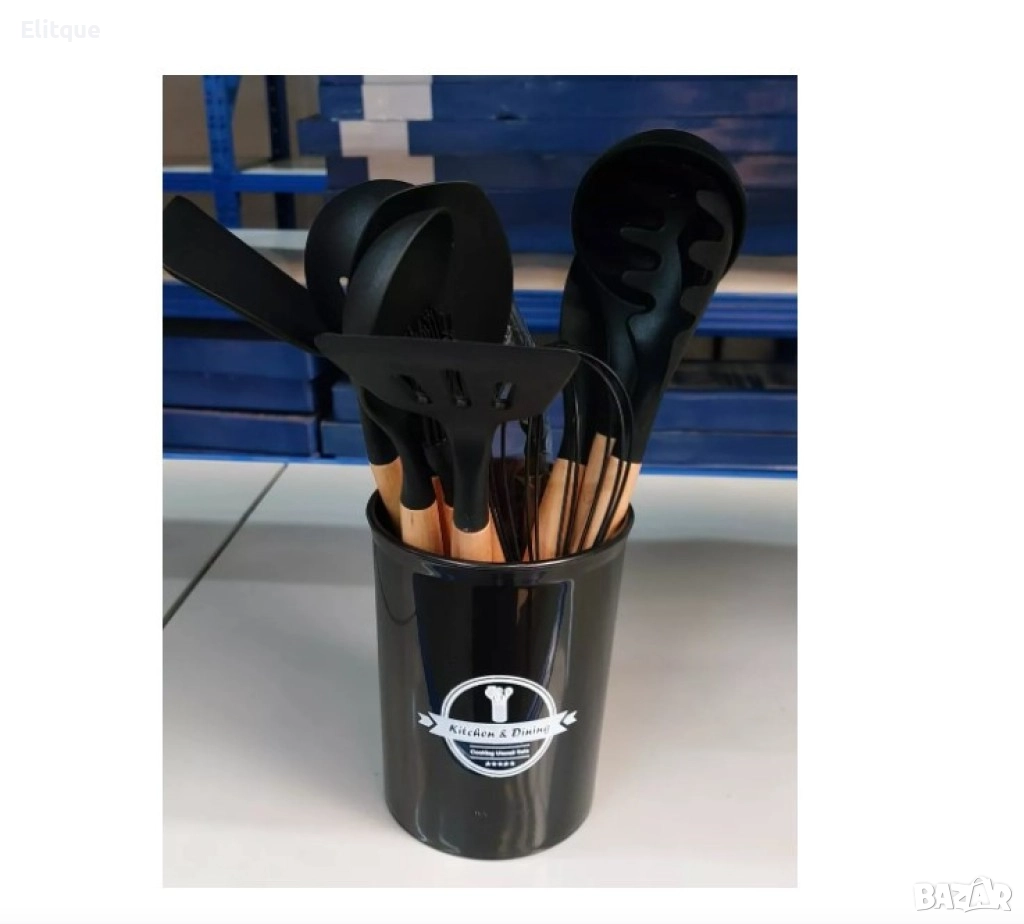 Комплект кухненски прибори 11 бр. в кръгла поставка.