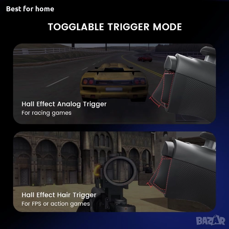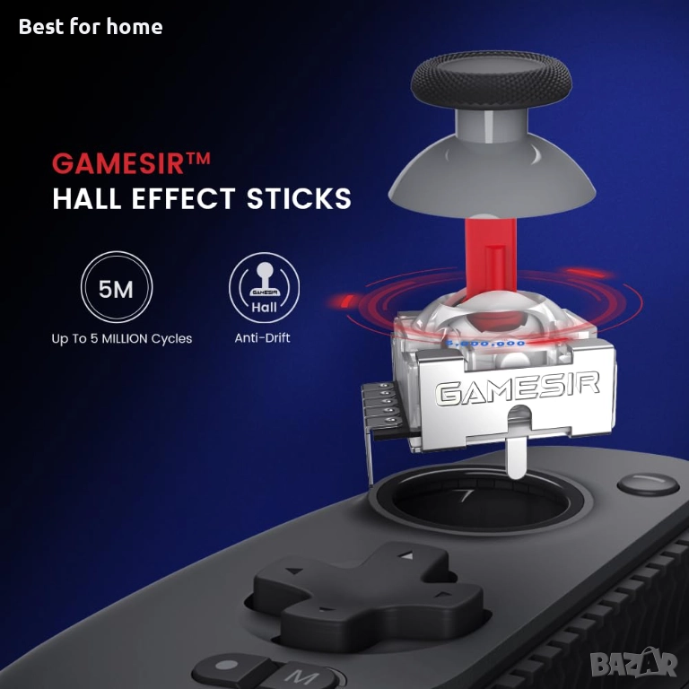 🎮 Прецизност и издръжливост: Сензорните джойстици и спусъците с ефект на Хол предлагат прецизен, плавен и издръжлив контрол за състезателни игри.