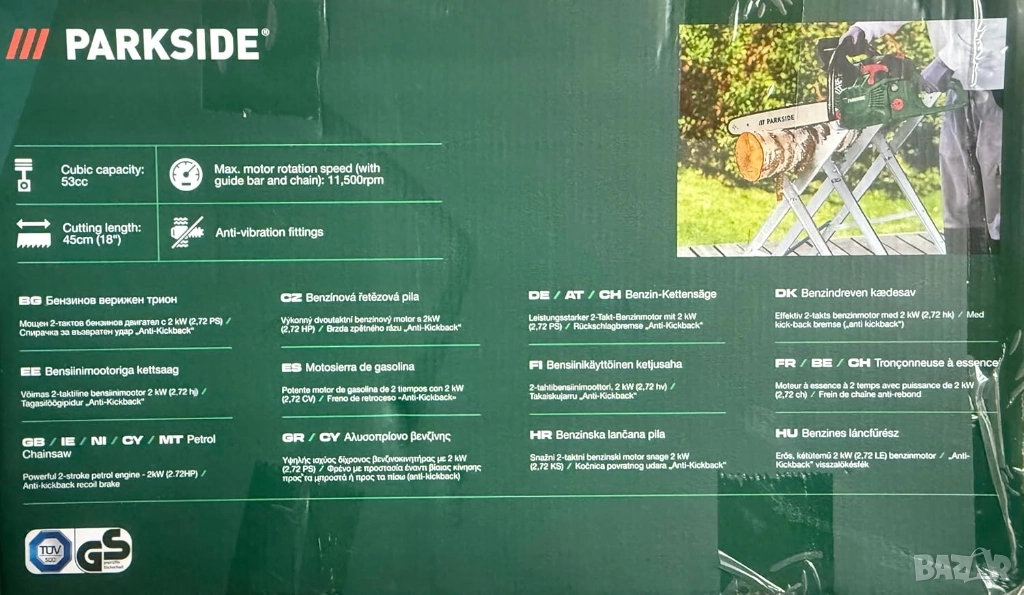 Parkside PBKS 53 A2 бензинова верижна резачка/2.72 HP/53 cm³/44 cm