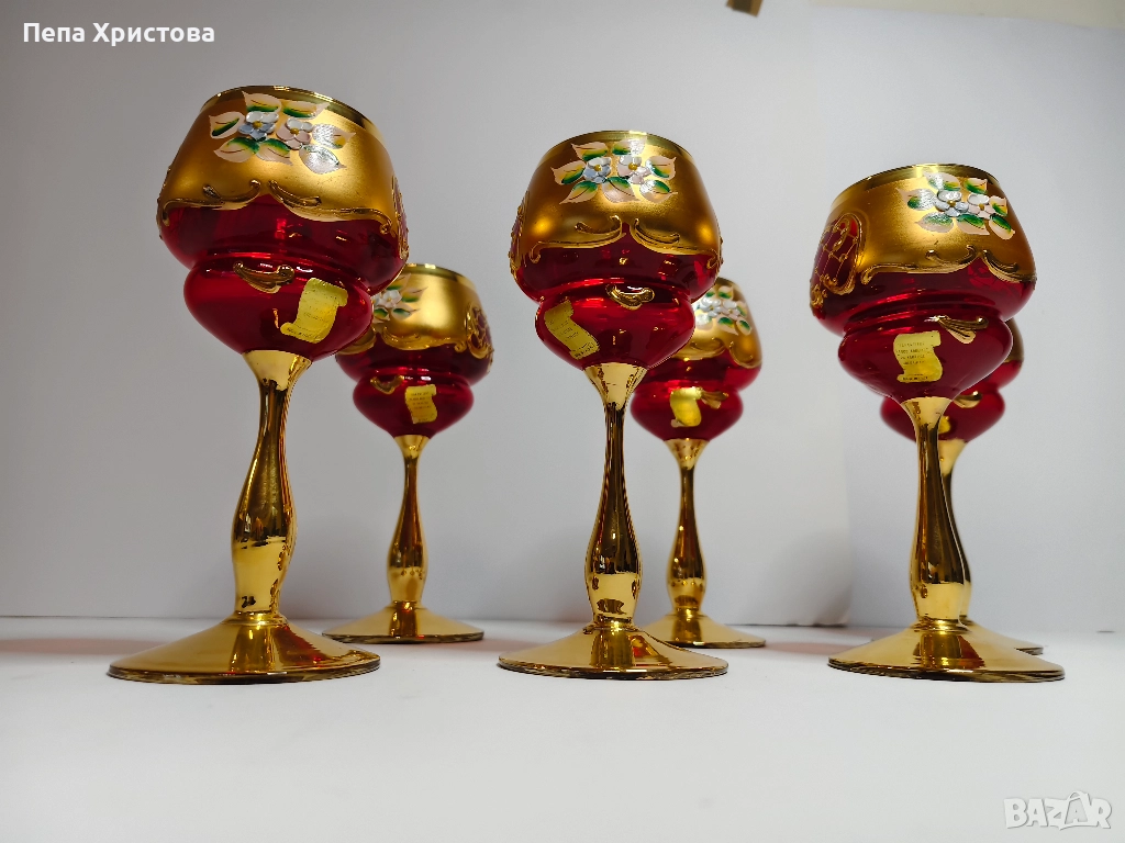 чаши за вино от италиански цветен кристал → Обява 52901624