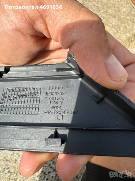 Декоративен капак на предна дясна седалка на Ауди А6 Audi A6 8e0882327 само за 10Eur., снимка 1 - Части - 52901724 Декоративен капак на предна дясна седалка на Ауди А6 Audi A6 8e0882327 само за 10Eur., снимка 2 - Части - 52901724 Декоративен капак на предна дясна седалка на Ауди А6 Audi A6 8e0882327 само за 10Eur., снимка 3 - Части - 52901724 1/3