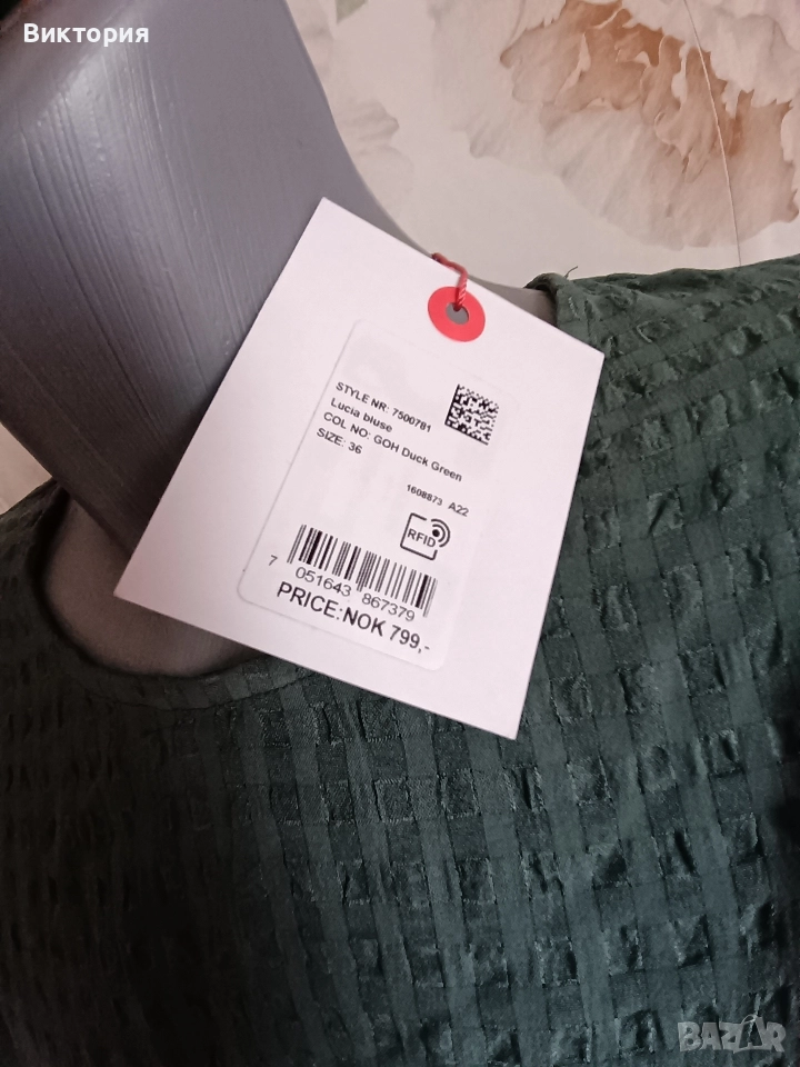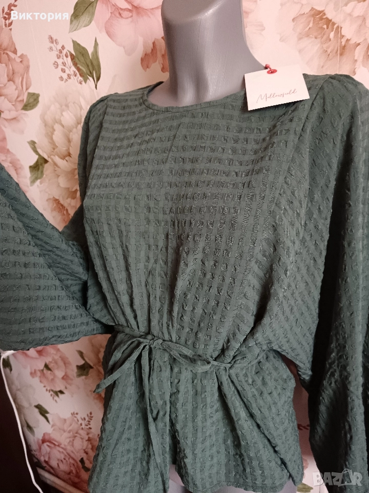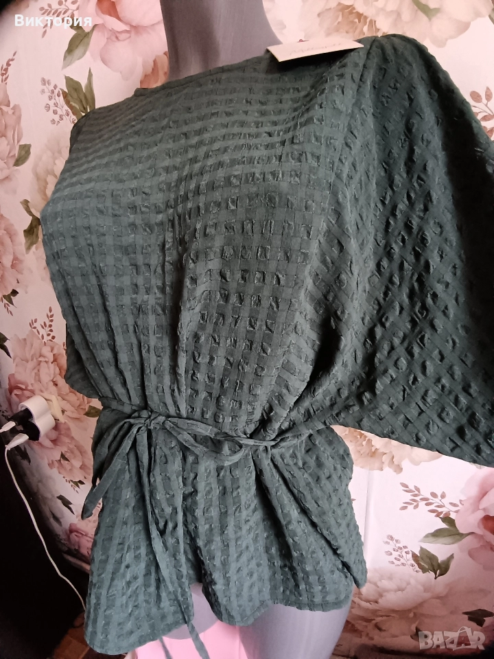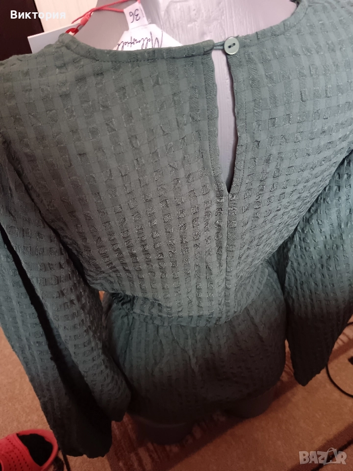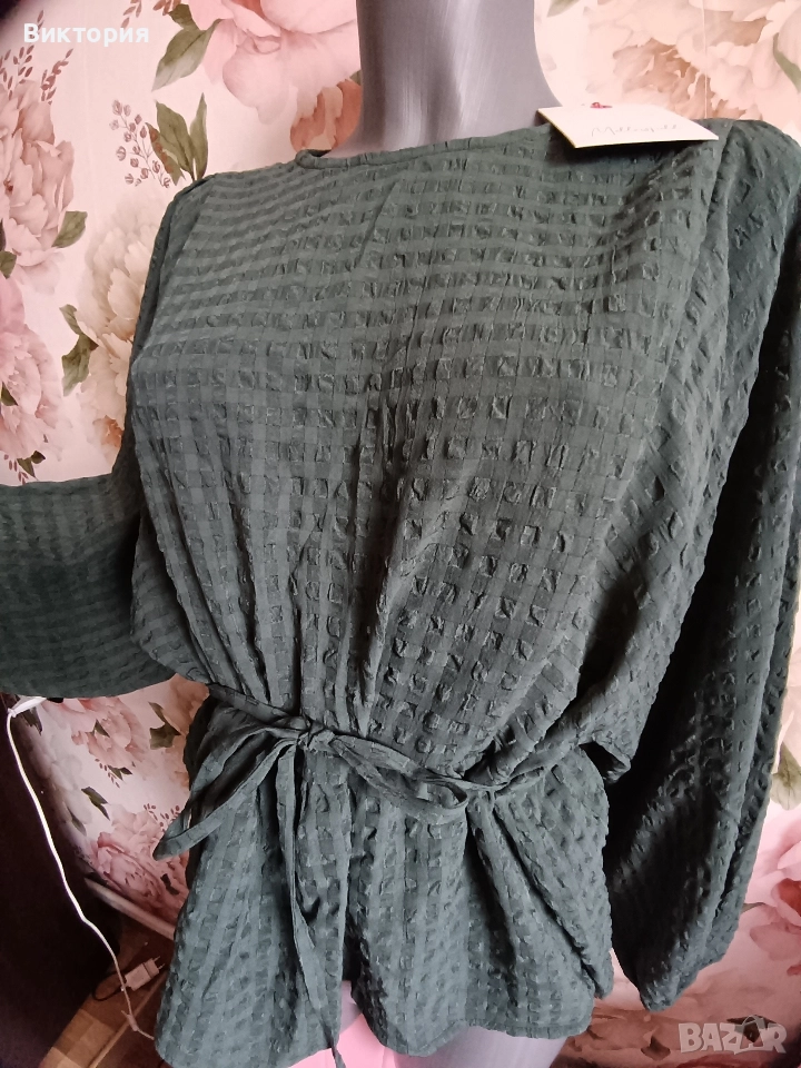 Дамска свободна риза ,в прекрасен зелен цвят ,нова,размер с по етикет ,но спокойно може да се носи и от м,цена 25 лв