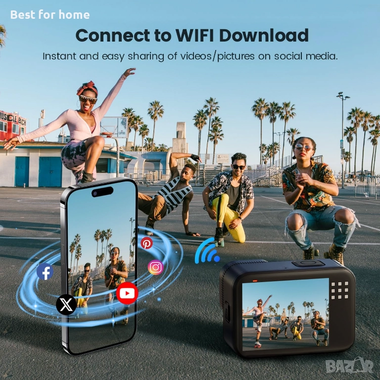 Лесно незабавно споделяне: Насладете се както на пейзажен (16:9), така и на портретен (9:16) режим на снимане, предназначени за TikTok и други социални платформи. С вградения 2.4GHz Wi-Fi е лесно да споделяте вълнуващите си приключения, като просто изтеглите приложението Viipulse на вашето iOS или Android устройство, свържете камерата чрез WiFi и прехвърлите видеоклиповете и снимките си на телефона си за минути. (Тази камера не поддържа стрийминг на живо)