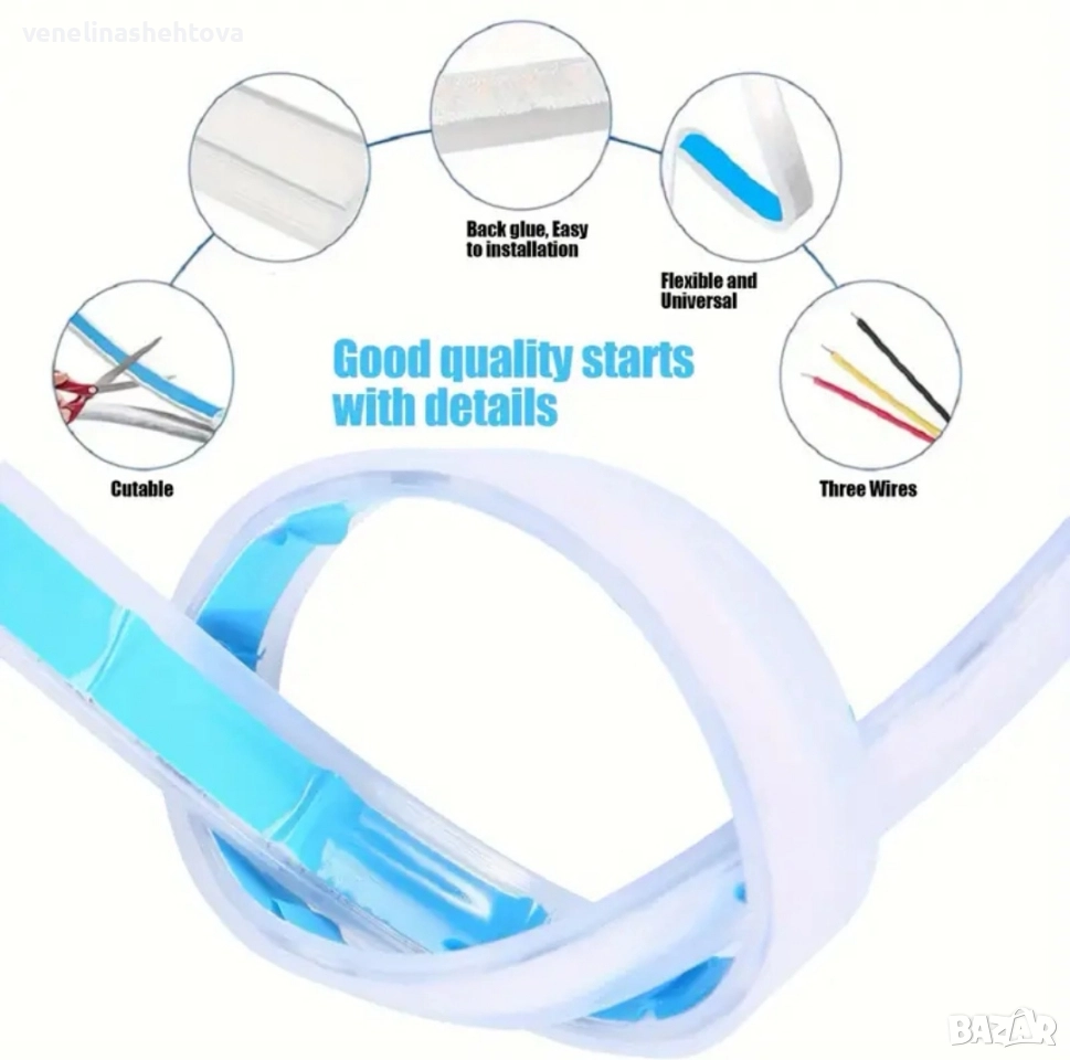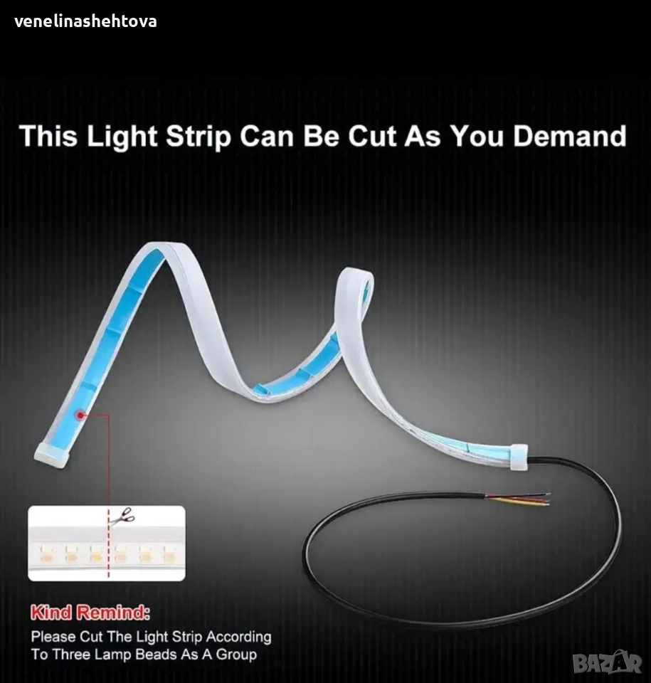 Гъвкавият дизайн на лентата позволява лесен монтаж, като може да се реже на 30,40 и 60см. според нуждите на вашия автомобил.