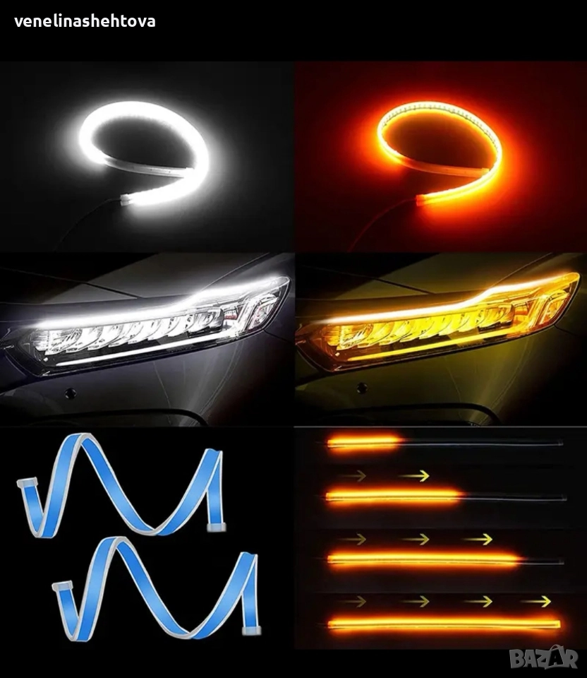 2 броя LED дневни светлини за кола АВТОМОБИЛ с функция бягащ мигач