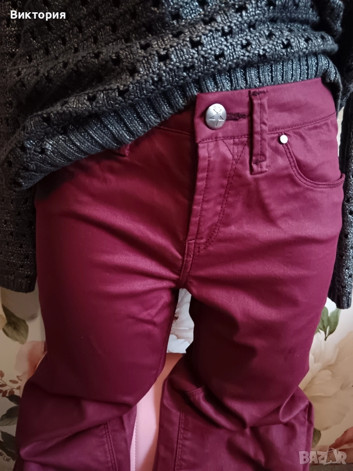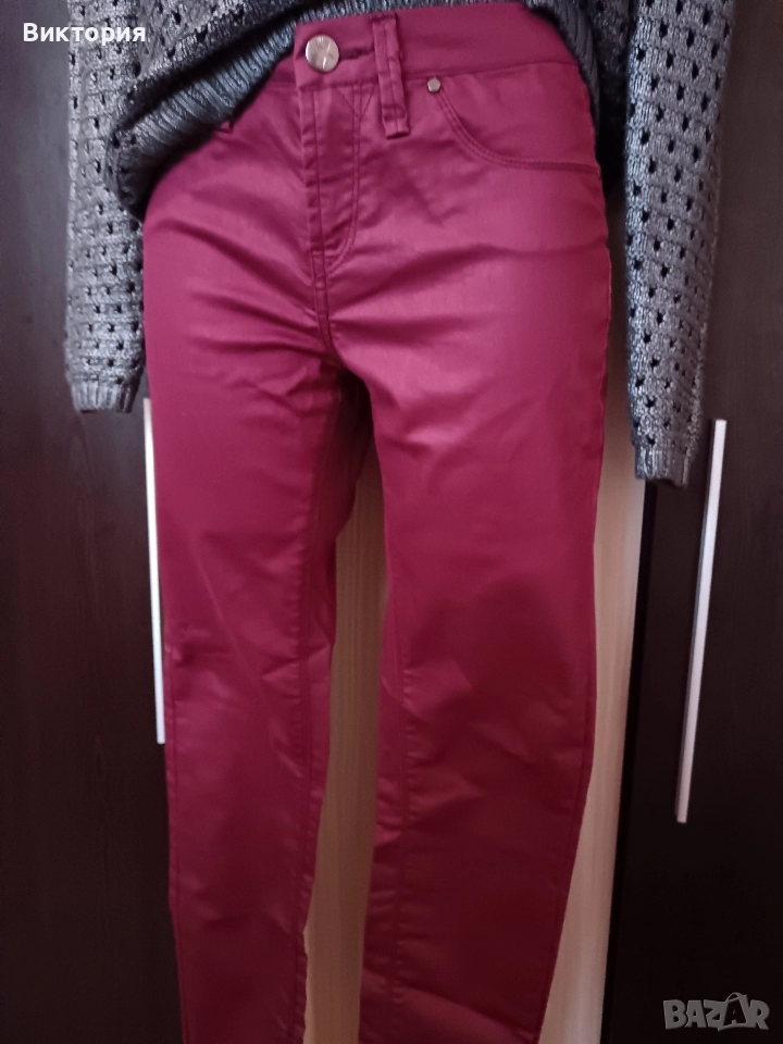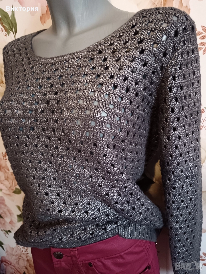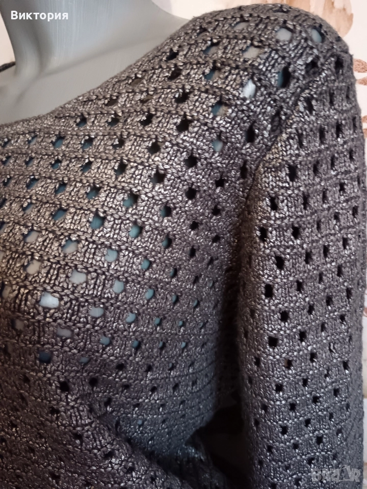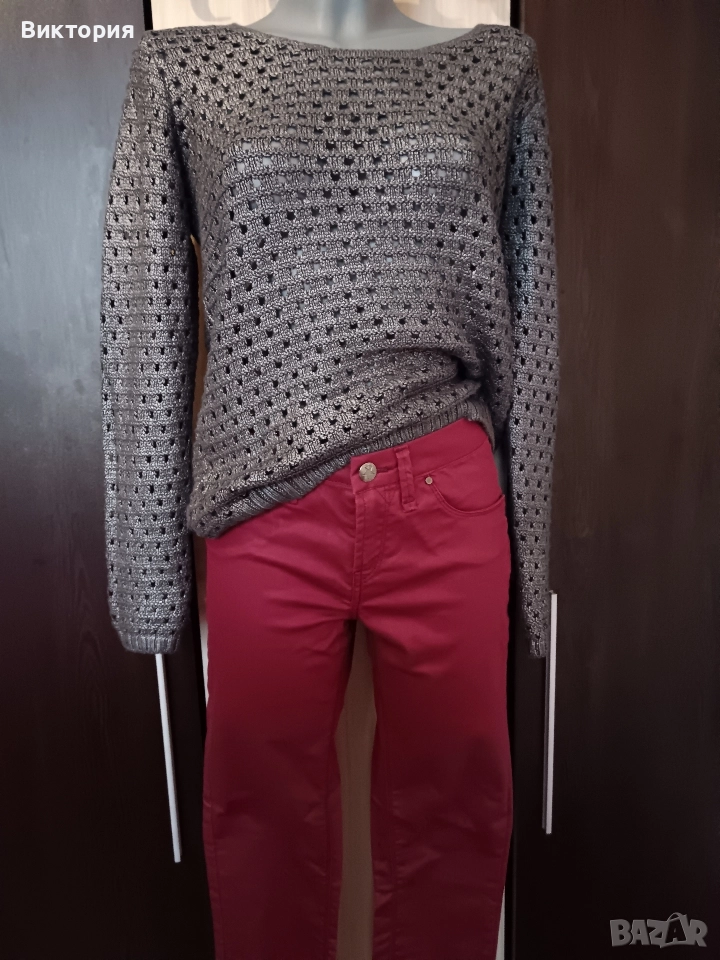 Дамска блуза на дупки с финно ламе ,размер хс-с ,еластична ,+панталон цвят бордо тип промазка Размер хс ,цена за двете 28лв