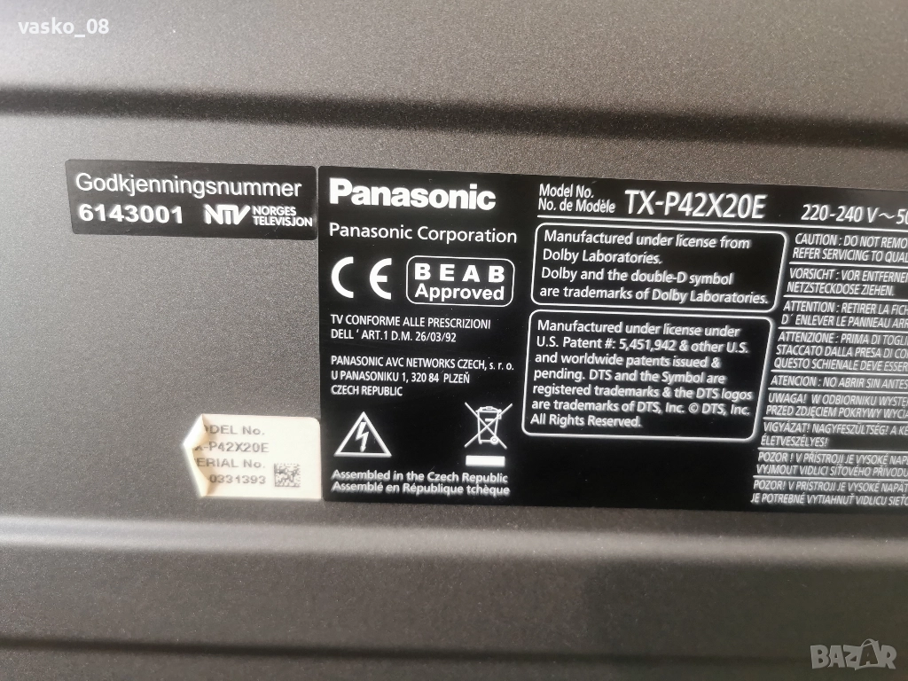 PAL -B/G/H, -I, -D/K: SECAM -B/G, -D/K, L/L', DVB-T, DVB-T (MPEG4-AVC [H.264]), DVB-C (MPEG4-AVC [H.264])