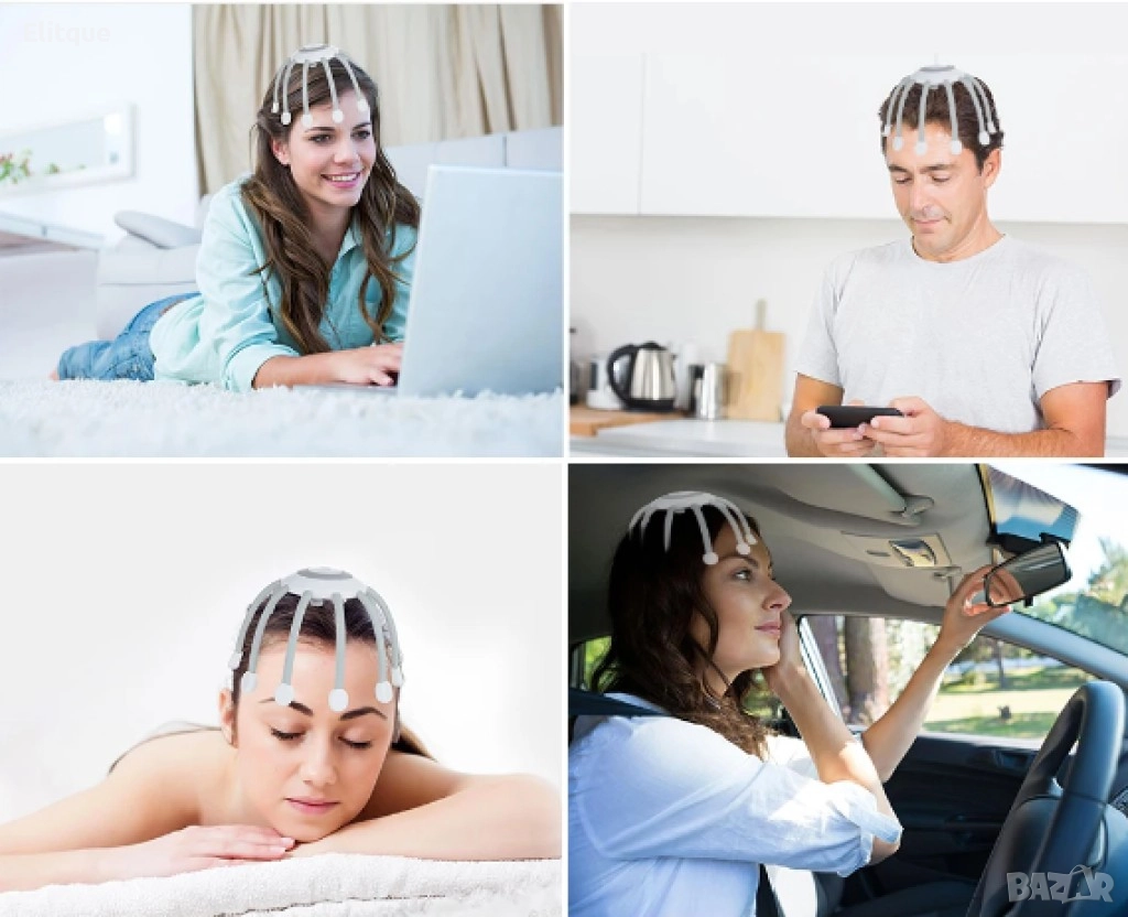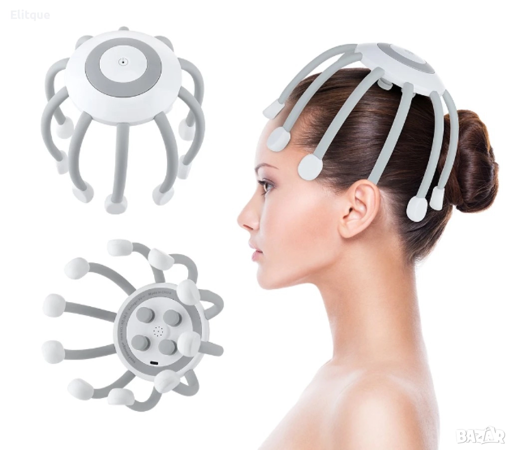 Характеристики: Иновативен многоточков масаж с множество масажни глави, разпределени на 360° около главата, осигурявайки цялостен масаж. Всяка масажна глава представлява независим източник на енергия; 14 масажни глави образуват масажна матрица. Обвивката, изработена от висококачествен ABS и силикон, предлага приятно усещане и е лесна за почистване. Литиева батерия с голям капацитет, която осигурява до 480 минути използване след едно зареждане. При използване 15 минути на ден, устройството може да функционира през целия месец. Без ограничение по възраст - подходящо за използване от възрастни и деца. Функции: Масажиране на скалпа за освобождаване от напрежение, улесняване на главоболието, релаксиране на тялото, подобряване на качеството на съня и работата.