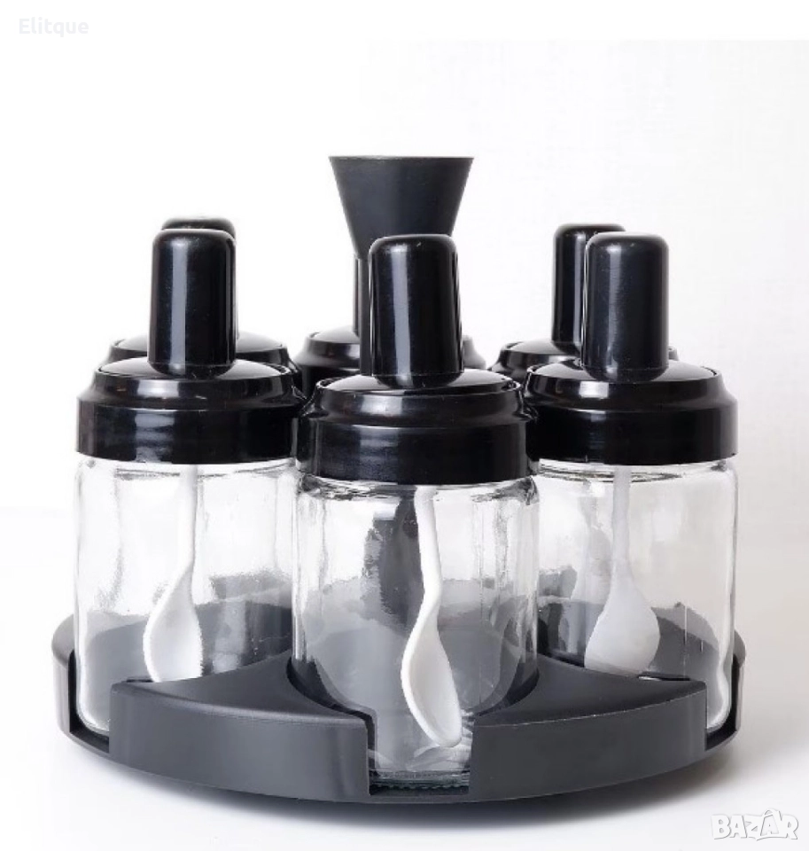 ??️ Комплект от 6 контейнера за подправки, с въртяща се опора на 360 градуса: Практичен и стилен начин за съхранение на вашите любими подправки. Със седем отделения и въртяща се база, този комплект предоставя удобен достъп и позволява лесно откриване на нужната подправка. Идеален за подреденост на кухненския плот! ??✨
