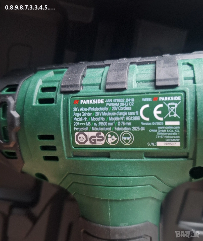 малък акумулаторен ъглошлайф на Парксайд 20В Parkside 20V PWSAM 20-li C2 → Обява 52902292