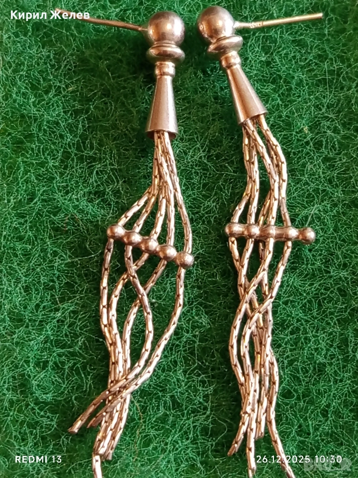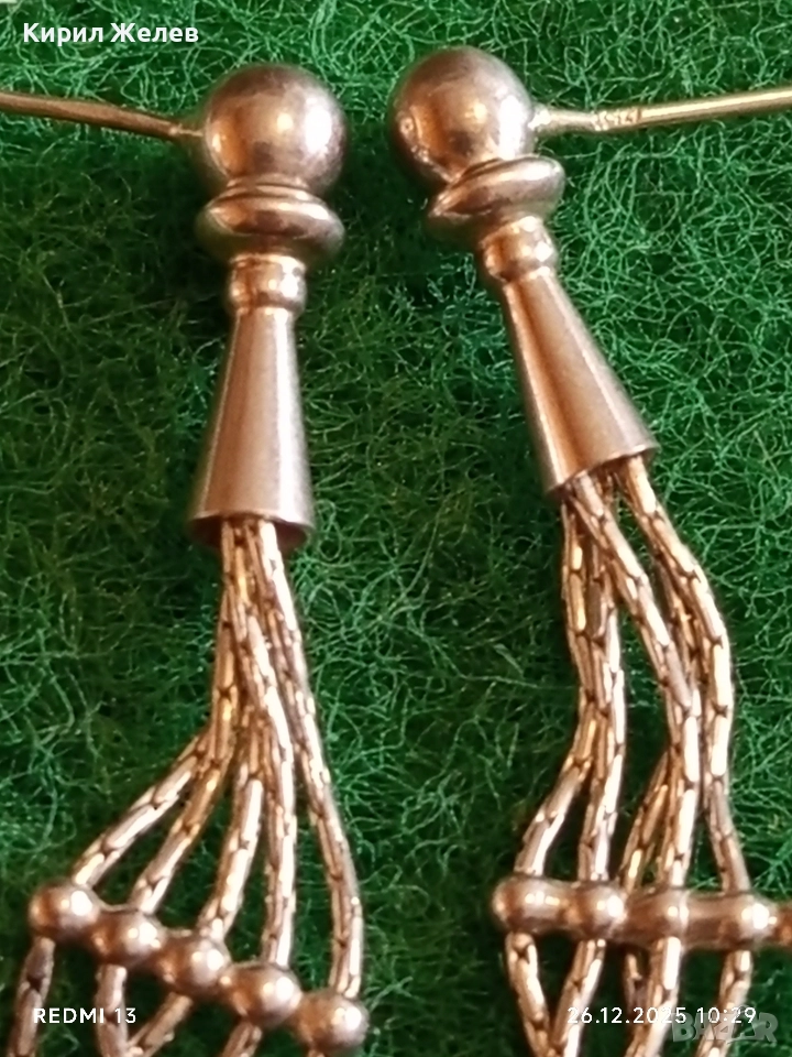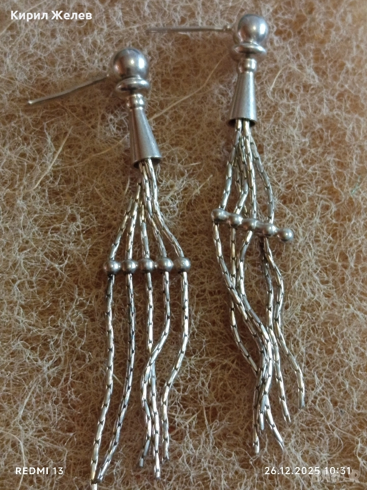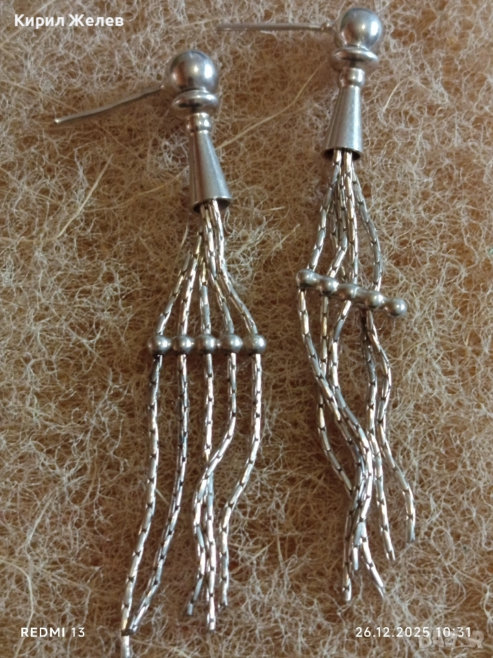 Винтидж сребърни висящи обеци тип пискюл от синджири елегантен дизайн 17119
