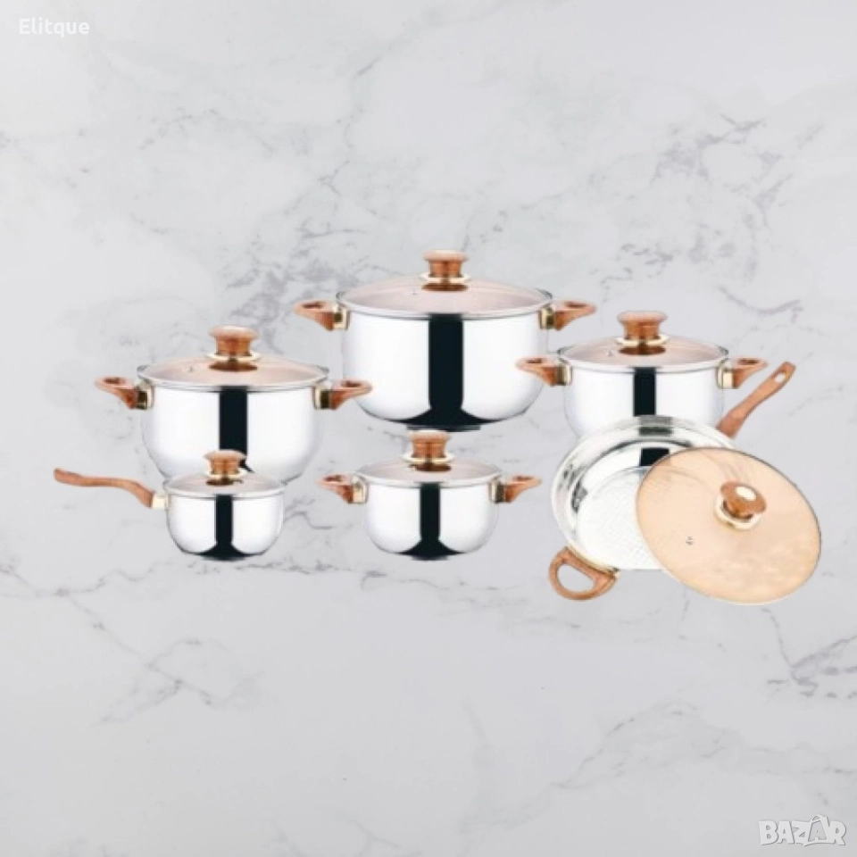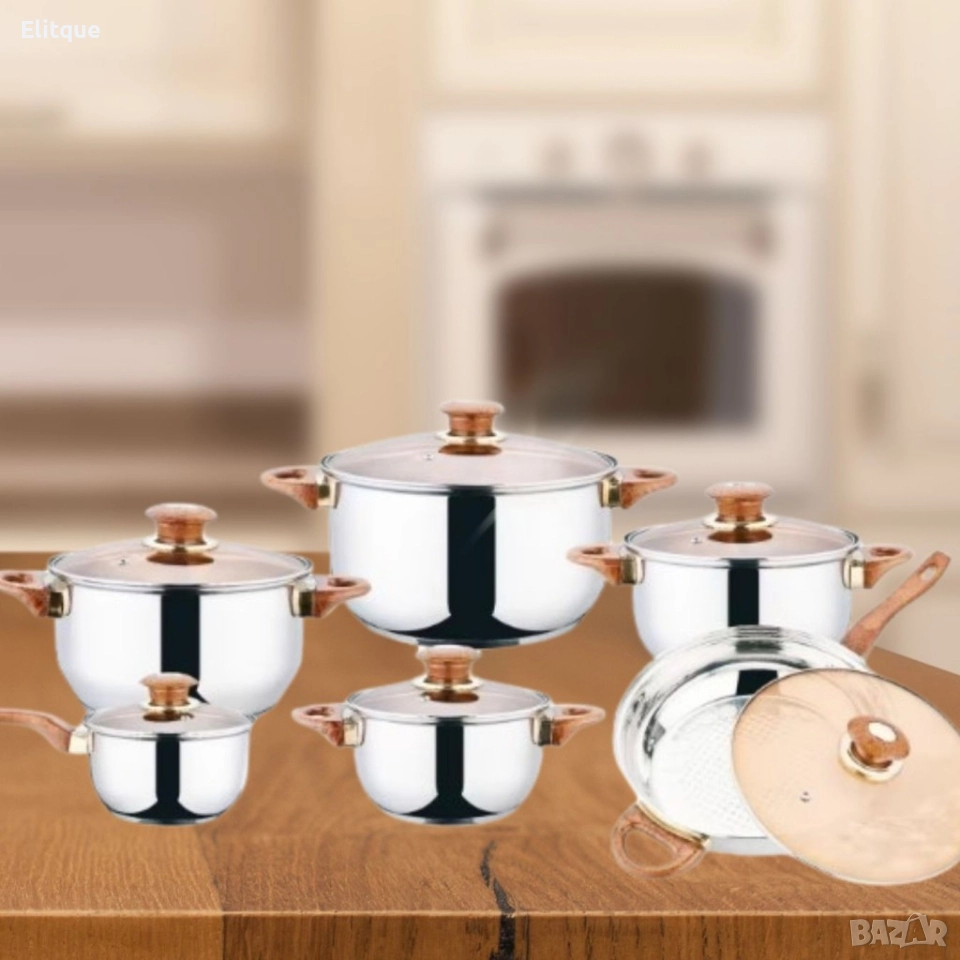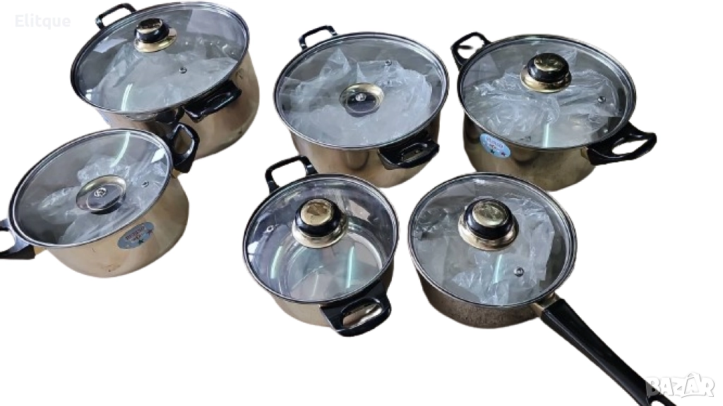Комплект от 12 части съдове за готвене от неръждаема стомана със стъклени капаци