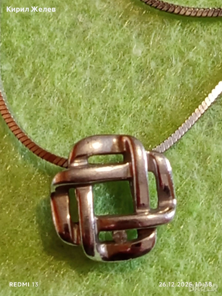 Елегантно сребърно колие с висулка тип келтски възел финно нежно 50992