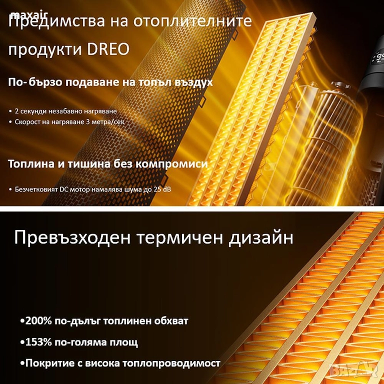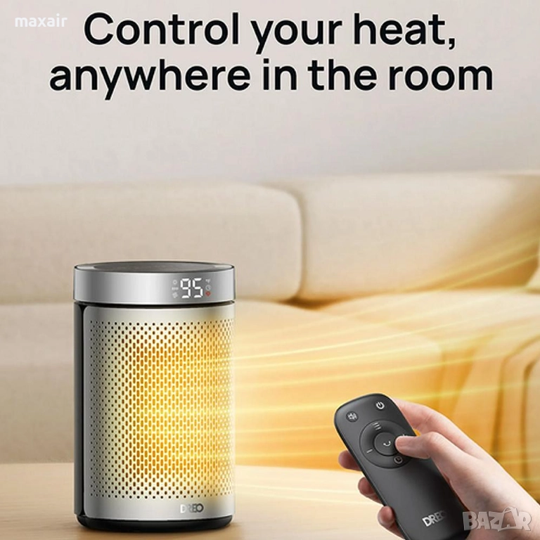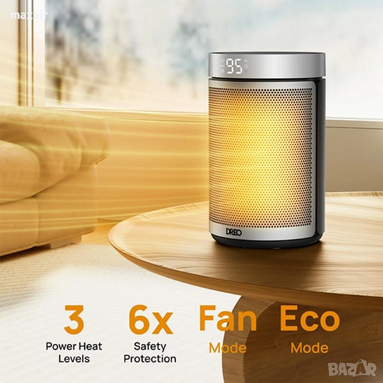 Отоплителите DREO могат да осигурят моментално отопление само за 2 секунди, благодарение на най-новата технология Hyperamics™. Мощният 1500W PTC подобрява ефективността на отоплението още повече.