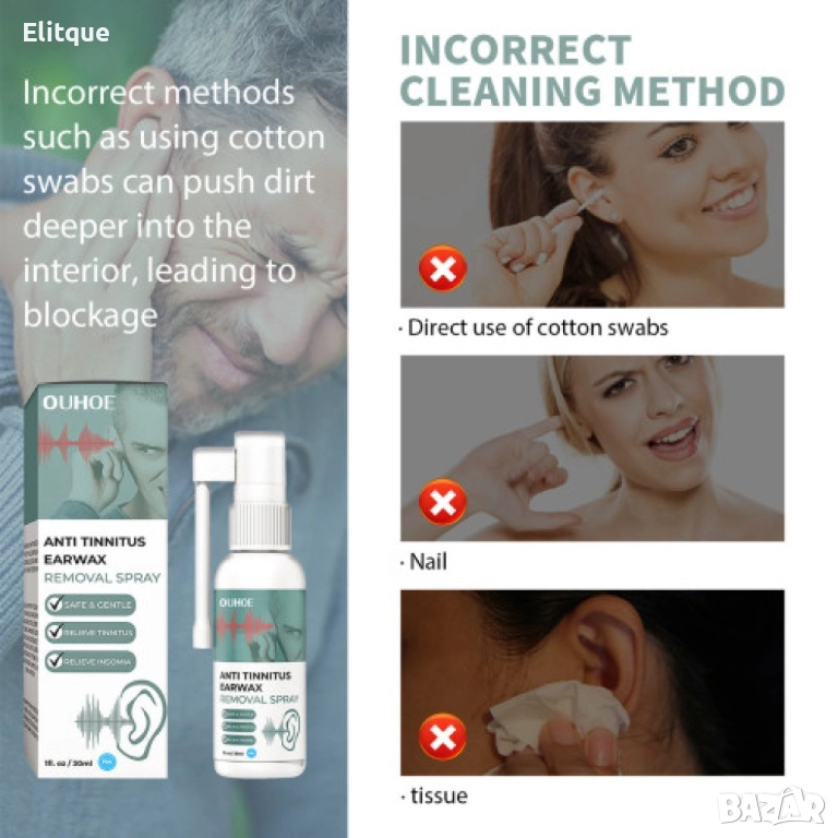 ?? Почистващ спрей за уши за облекчаване на болката и шума: Уникална формула, предназначена да успокои и почисти ушите, предоставяйки облекчение от дискомфорт и шум в ушите. ?️? Идеален за подобряване на ушното здраве и усещането за комфорт.