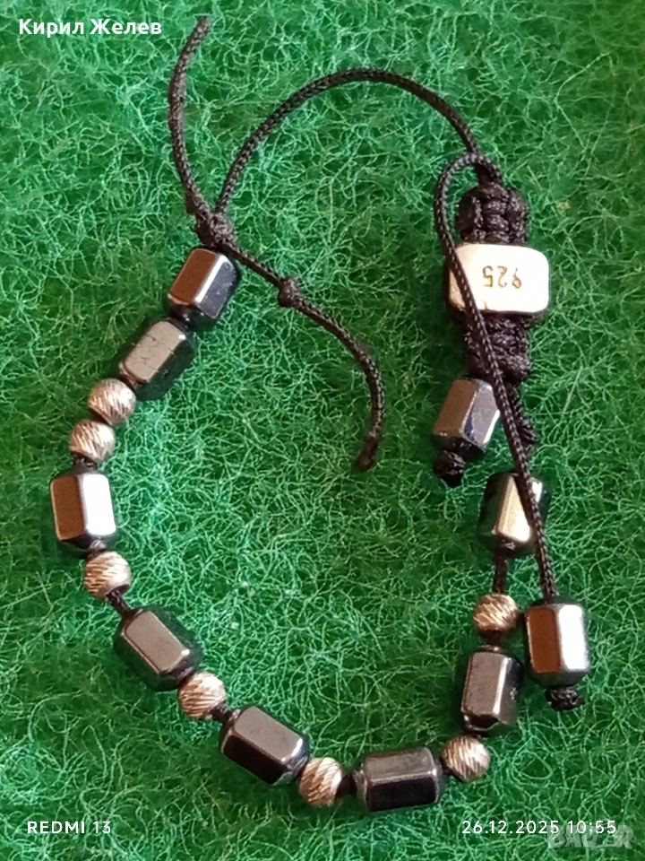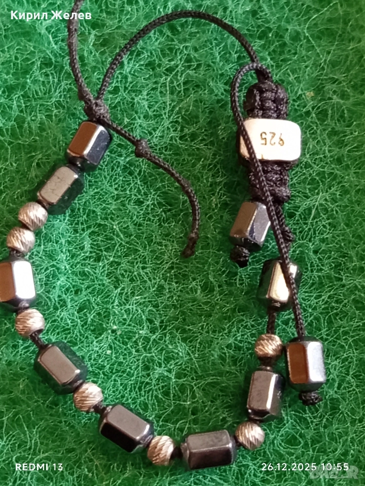 Унисекс гривна от магнитен хематит и сребро Арт бижу 32863