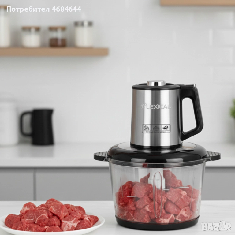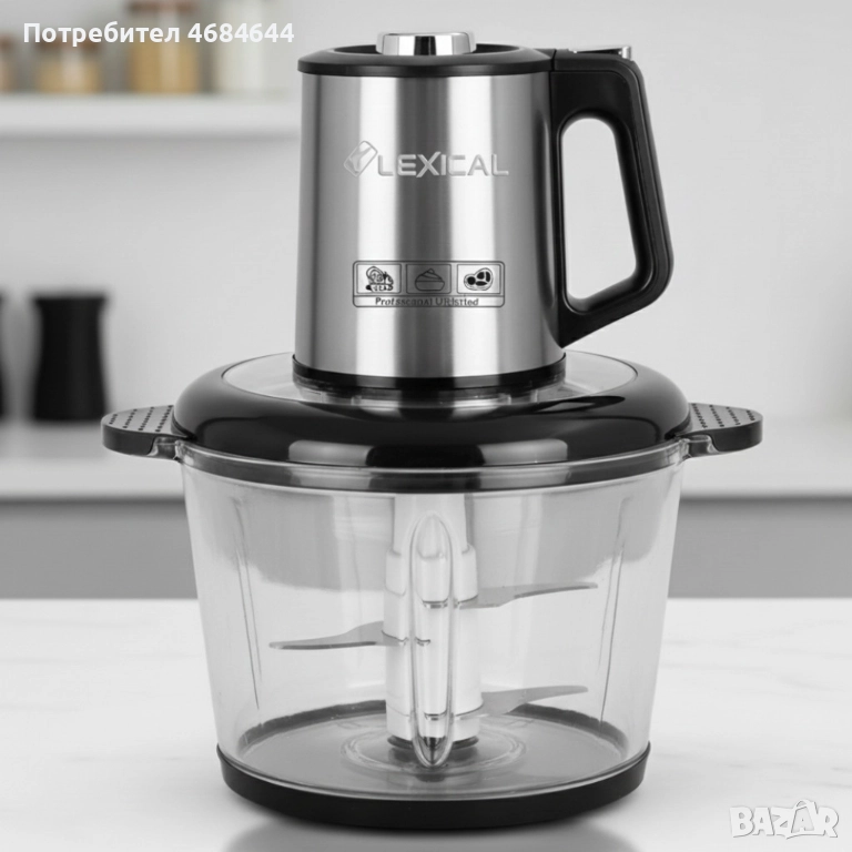 Електрически чопър Lexical LCH-1970 с неръждаем корпус и стъклена купа → Обява 52902710