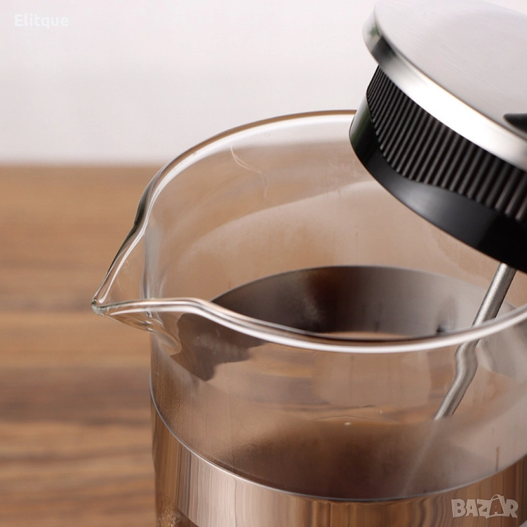 Стъклена френска преса с топлоустойчиво стъкло и филтър, обем 600 мл ☕?️