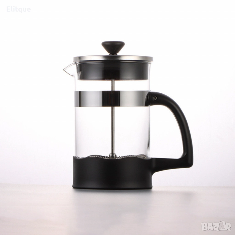 Стъклена френска преса с топлоустойчиво стъкло и филтър, обем 600 мл