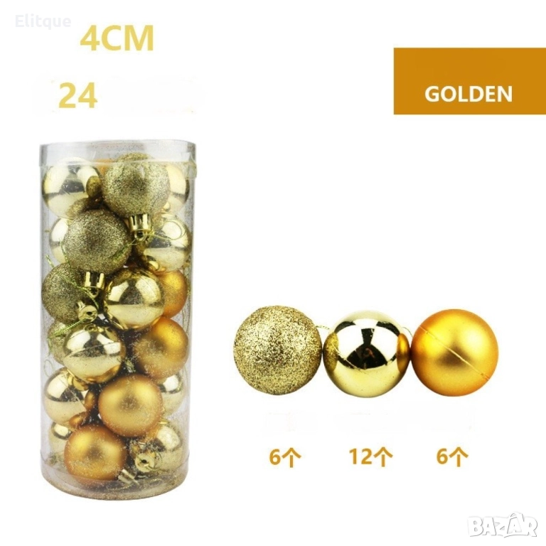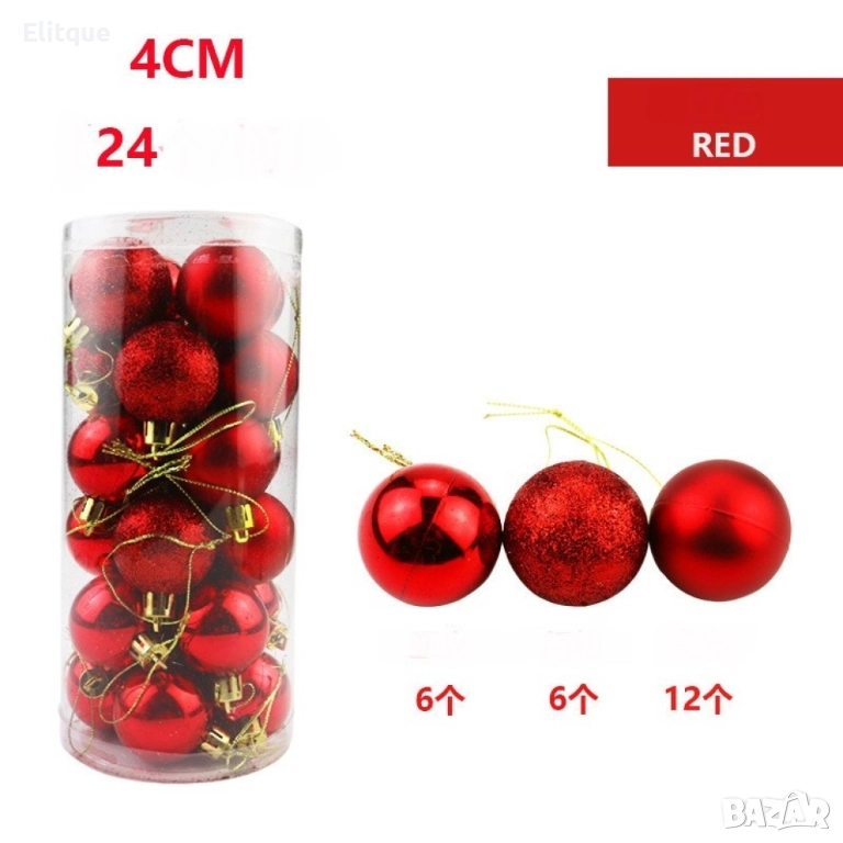 Коледни топки за украса, 24 броя с кутия - SD36 → Обява 52903018